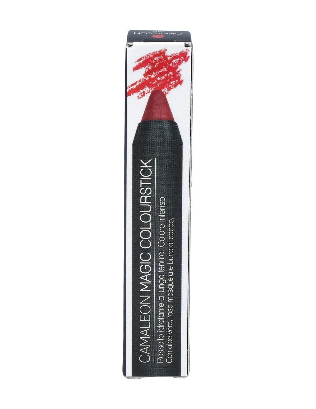 Camaleon ofrece la gama Magic Colour, formada por unos lápices labiales de colores intensos y vivos. En esta ocasión, la tonalidad rojo/burdeos es la elegida, cuya composición ha sido enriquecida con aloe vera, rosa mosqueta y manteca de cacao.