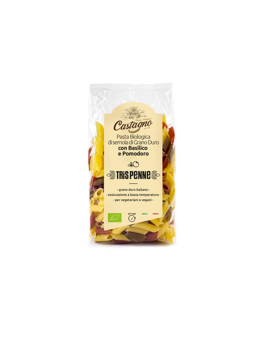Pack 12 Uds. MACARRONES DE TRIGO TOMATE Y ALBAHACA de Castagno