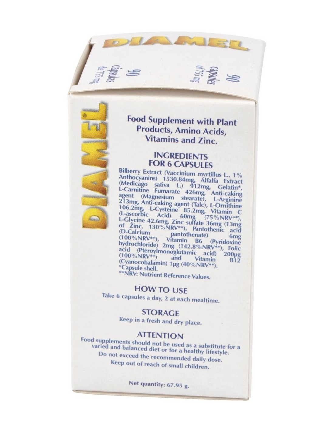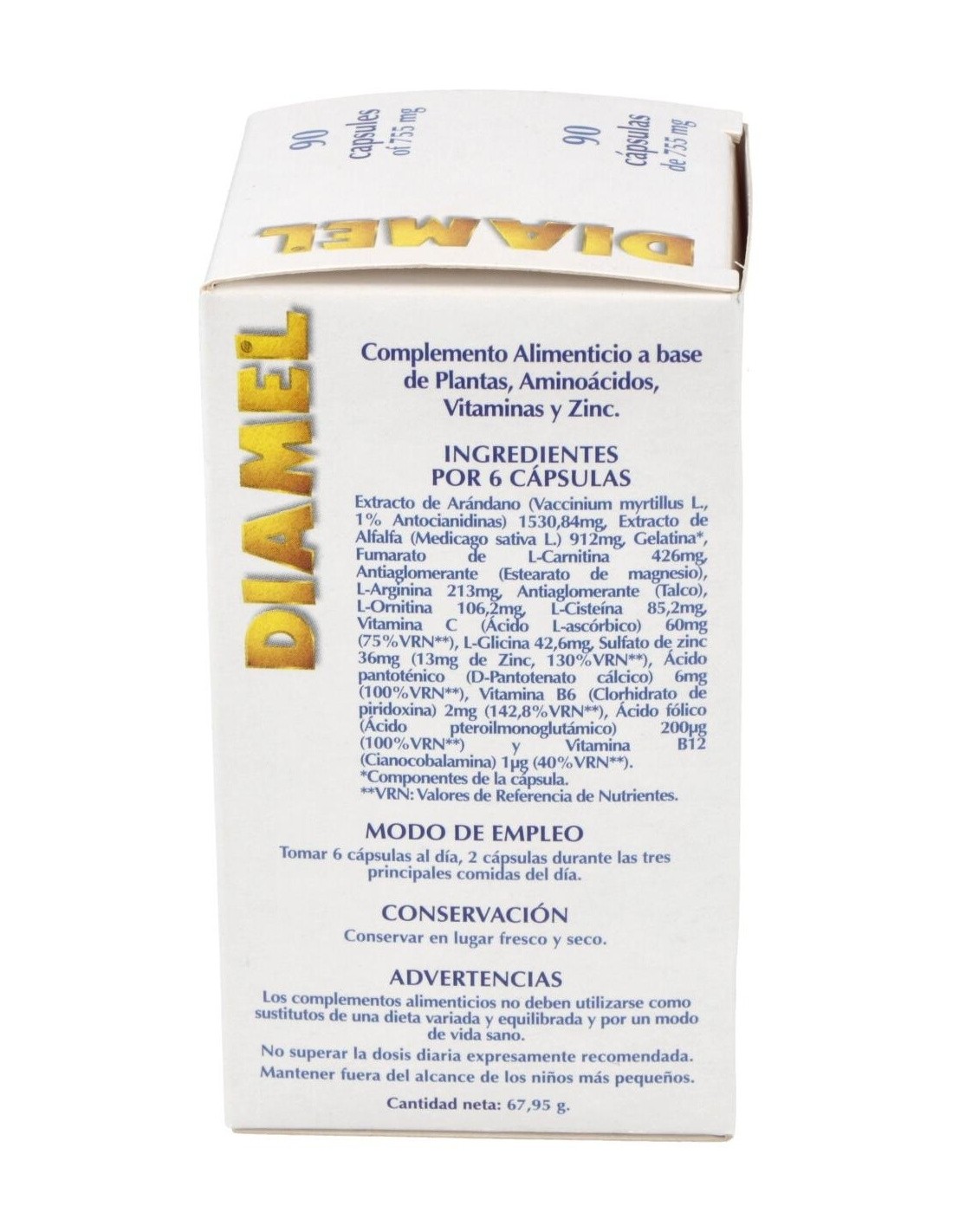 Arándano (Vaccinium myrtillus L.), Lactuca sativa (lechuga), L-Arginina, L-Carnitina, L Ornitina, L-Cisteína, Vitamina C (Ácido L-Ascórbico), L-Glicina, Sulfato de zinc, Vitamina B5 (D-pantotenato de calcio), Vitamina B6 (Clorhidrato de piridoxina), Ácido fólico (Ácido pteroilmonoglutámico), Vitamina B12 (Cianocobalamina), Acidulante (Ácido fumárico) y Envoltura (Gelatina).