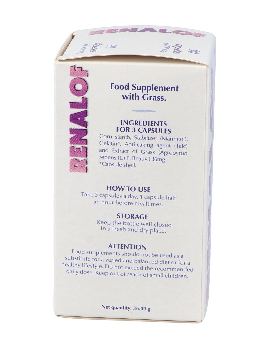 Extracto de grama (Agropyron repens), manitol, almidón de maíz, silicato magnésico.