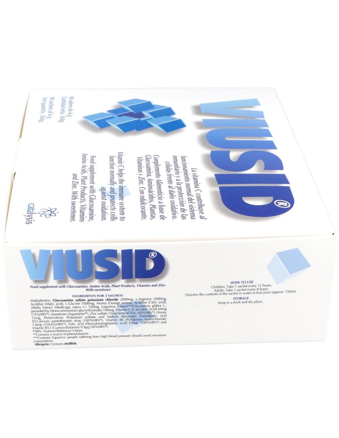 Viusid de Catalysis es un complemento alimenticio que está especialmente indicado para mantener activas todas las funciones orgánicas y reforzar su sistema inmunitario. Las sustancias antioxidantes que contiene ayudan a reducir el efecto de los radicales libres presentes en nuestro organismo.Viusid de Catalysis es un potente preparado nutricional cuyos compuestos se hallan de forma natural en el organismo. Está específicamente diseñado para aumentar las defensas del sistema inmune en todos los procesos que provocan inmunodeficiencia.Principios activos: