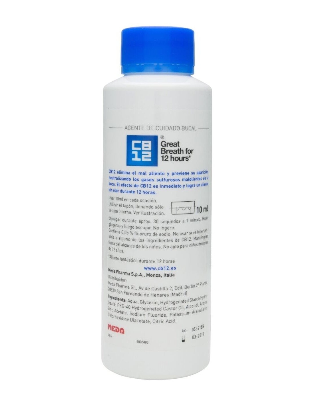 CB12® enjuague bucal es un enjuague específicamente formulado para el control y la eliminación de las sustancias que causan el mal aliento. Gracias a su uso, mantendrás las bacterias a raya durante hasta 12 horas, evitando el mal olor en la cavidad bucal.