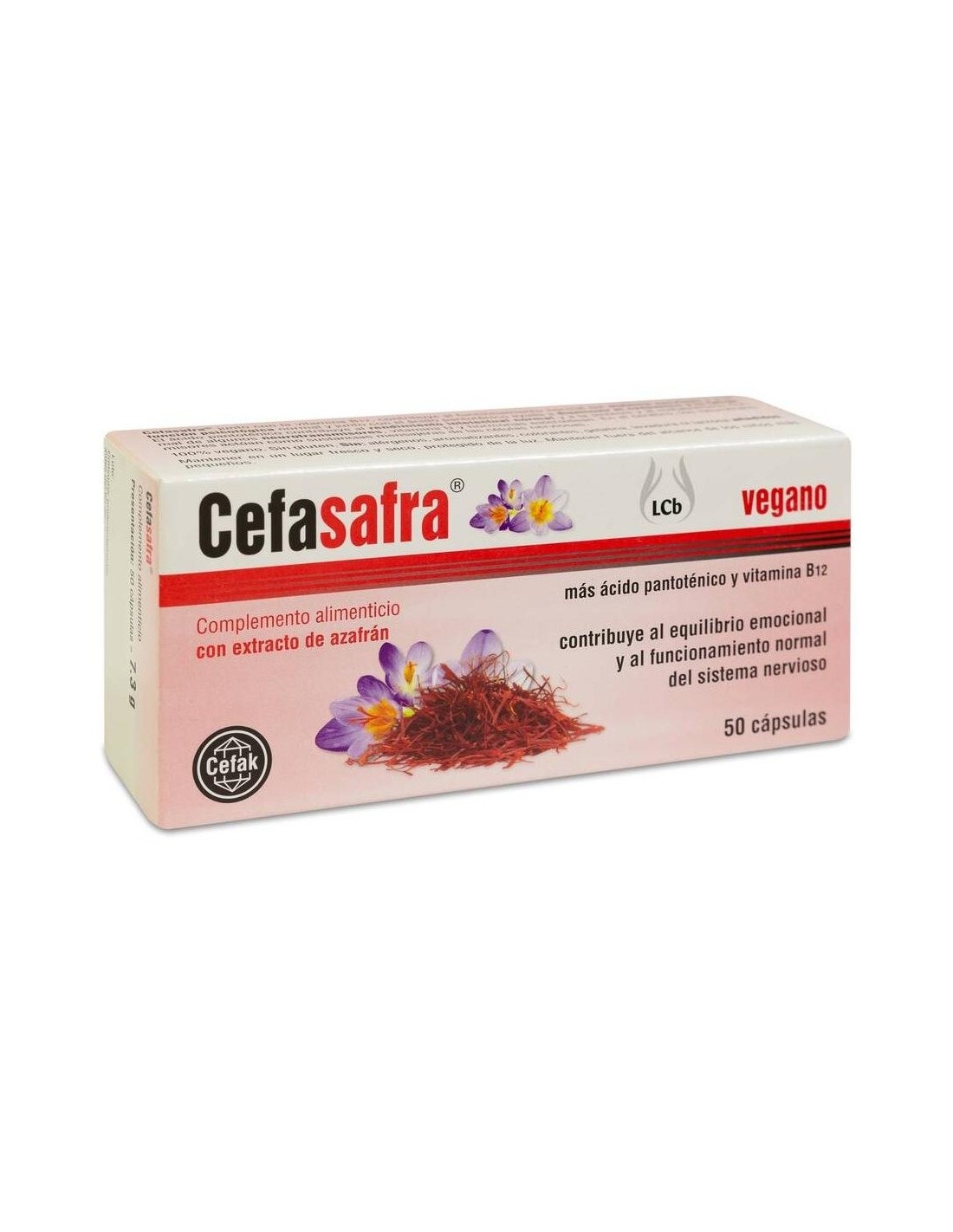 Este producto de la marca Cefak es un complemento alimenticio en forma de cápsulas que beneficia a personas que presentan estados de ánimo alterados. Los componentes de estas cápsulas son: D-pantotenato cálcico, extracto de azafrán, maltodextrina, extracto de arroz, aceite vegetal y vitamina B. Todos ellos contribuyen al funcionamiento equilibrado del sistema nervioso. La cubierta de las cápsulas está hecha de ingredientes específicos que ayudan a evitar o mitigar posibles molestias estomacales.