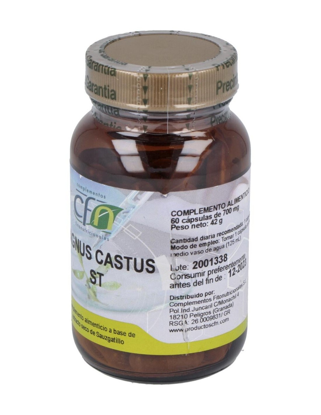 Refuerzo alimenticio CFN con extracto de sauzgatillo (árbol casto), que alivia los síntomas molestos del síndrome premenstrual. Igualmente contribuye a regular los ciclos menstruales y a tratar el acné. Se ha comprobado que ejerce un efecto inhibidor en la producción de prolactina, al ser consumido durante 3 meses. Asimismo se normalizan los niveles de progesterona y de LH (hormona luteinizante), previniendo la infertilidad idiopática (por falencias hormonales). Se recomienda su uso para neutralizar irregularidades del ciclo menstrual y dolor en los senos antes del periodo (mastodinia).