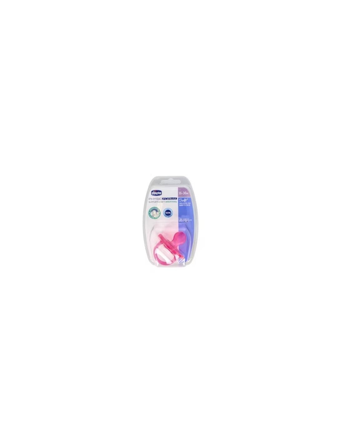 El chupete silicona physio soft anatómico de Chicco para bebés de más de 12 meses con la tetina active, favorece activamente el desarrollo funcional de los músculos de la cara y de la lengua. Con pequeñas estrías en la tetina que reproducen las líneas del paladar.
