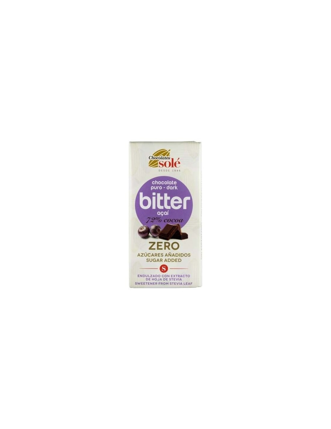Chocolate Negro 72% Con Açai Y Stevia 100Gr. S/A de Chocolates Sole