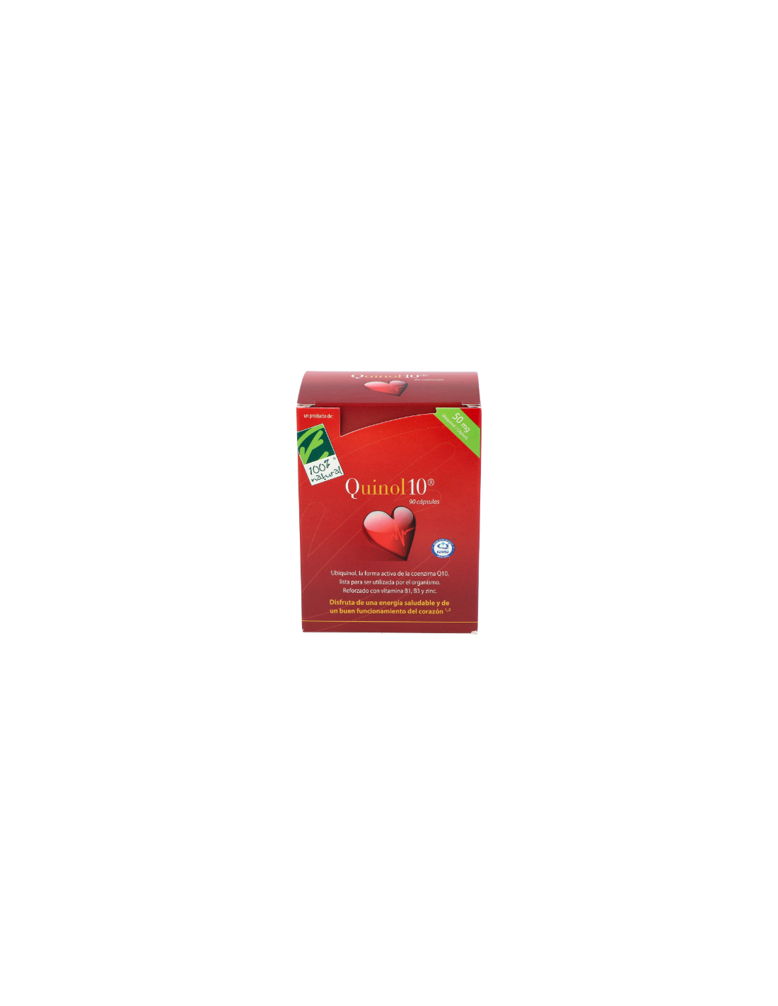 100% Natural Quinol 10 90cápsulas es un complemento perfecto para todos, pero para quienes estén por los 40 años es especialmente recomendable, ya que hay que tener en cuenta que la capacidad de transformar la ubiquinona en ubiquinol disminuye con la edad y en este producto la coenzima Q10 ya se presenta en forma de Ubiquinol. Contiene también vitamina B1 que contribuye al funcionamiento normal del sistema cardiovascular y vitamina C que ayuda al metabolismo energético normal.