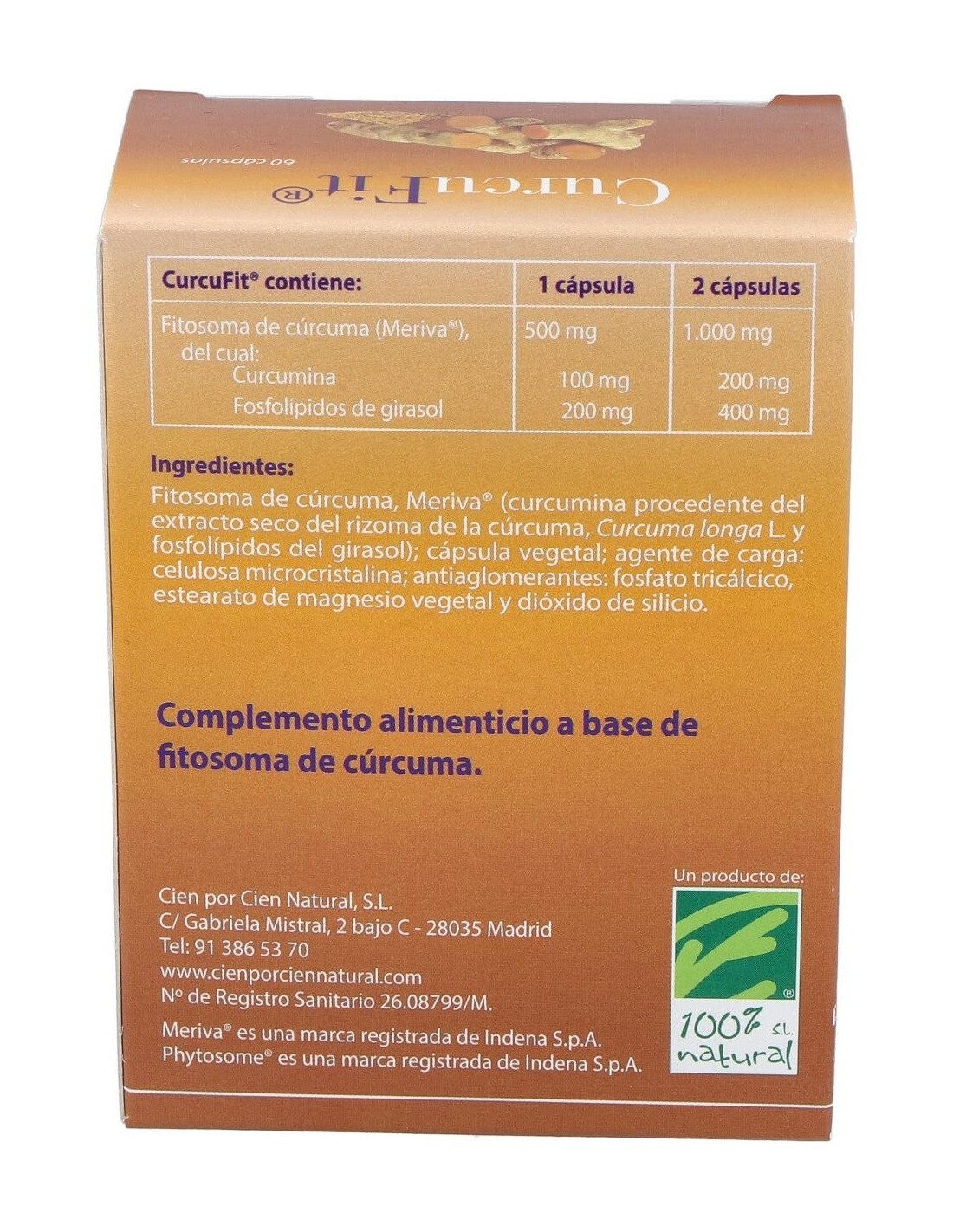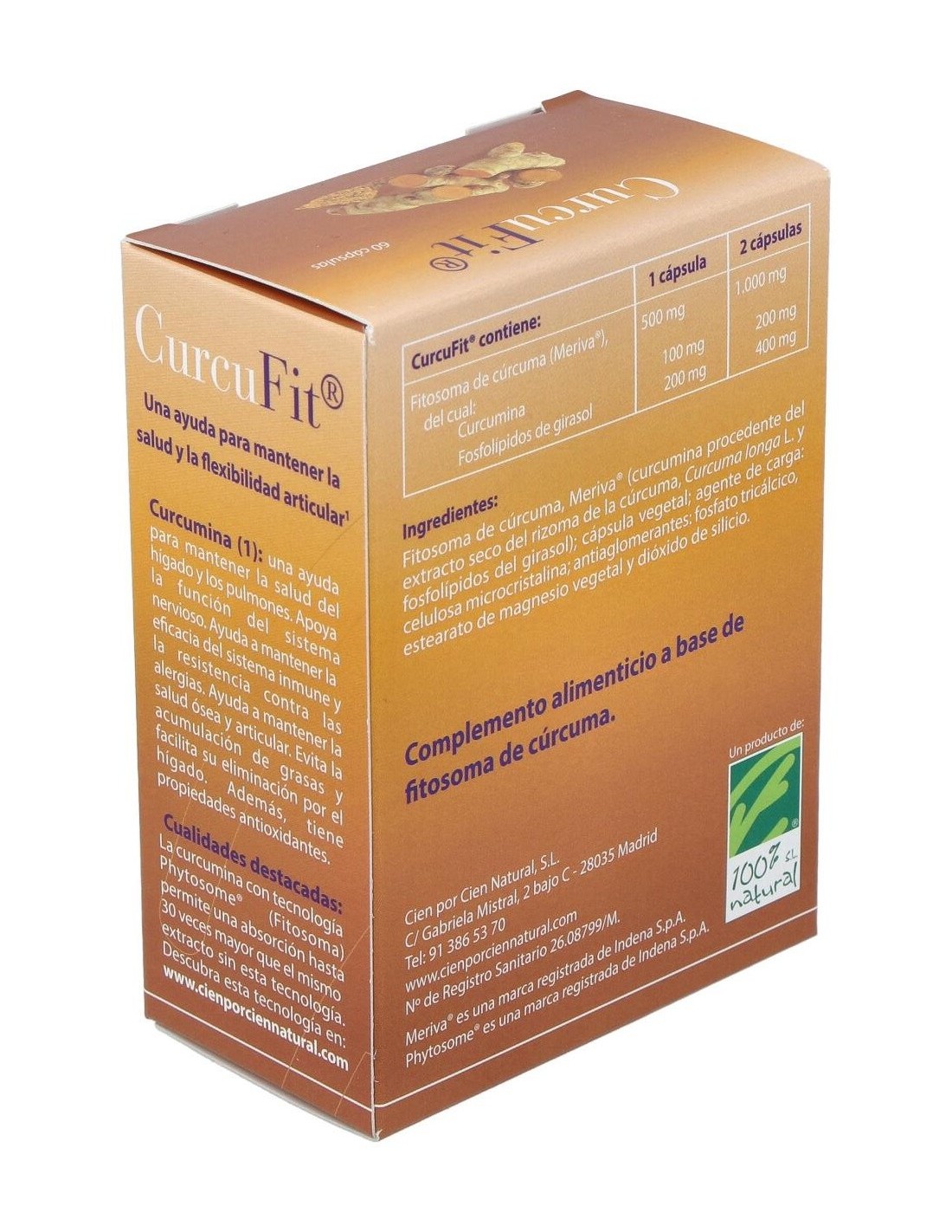 CIEN POR CIEN NATURALCurcumina en forma de Fitosoma que apoya la resistencia del organismo. La curcumina sirve de apoyo en el normal mantenimiento de las articulaciones.