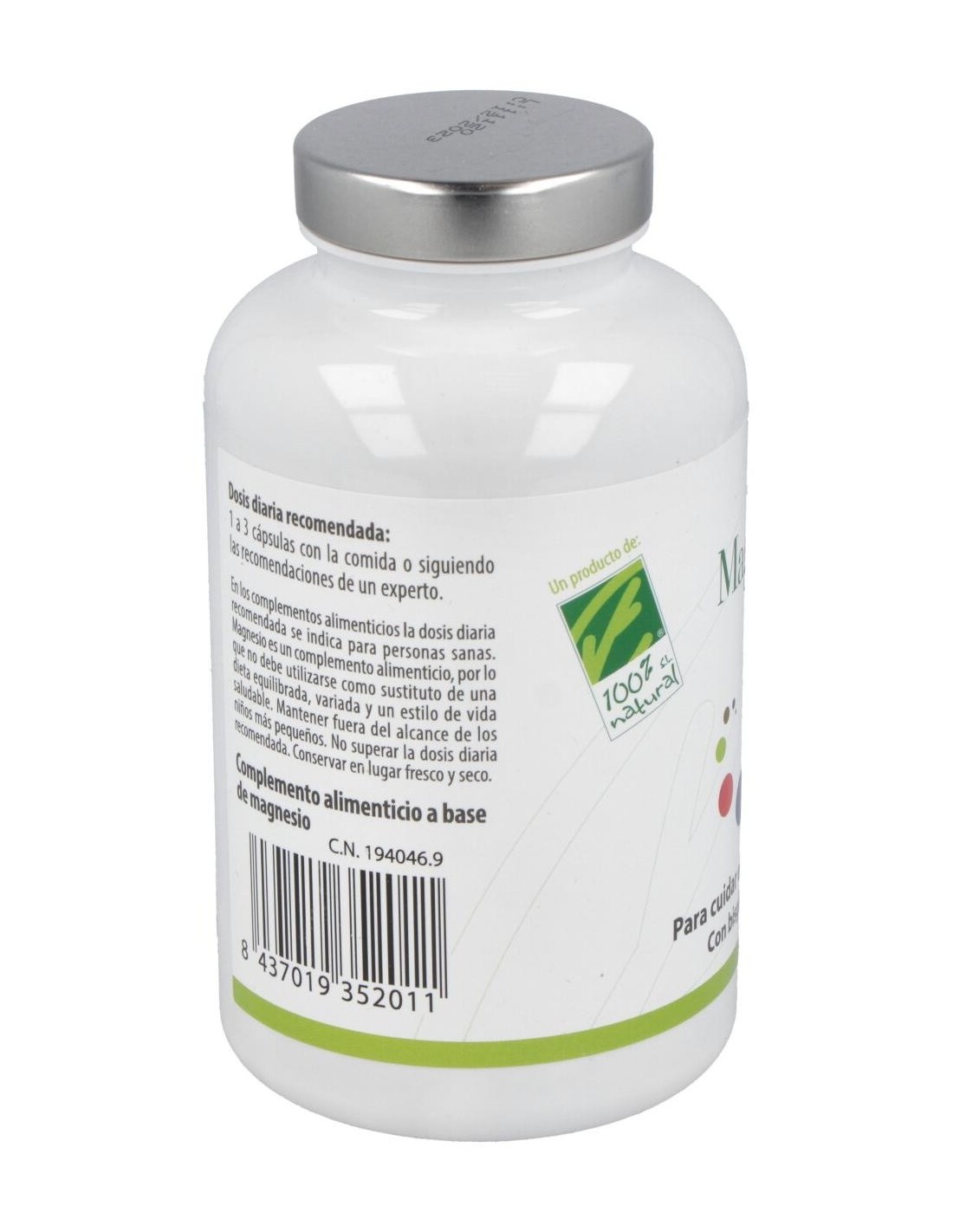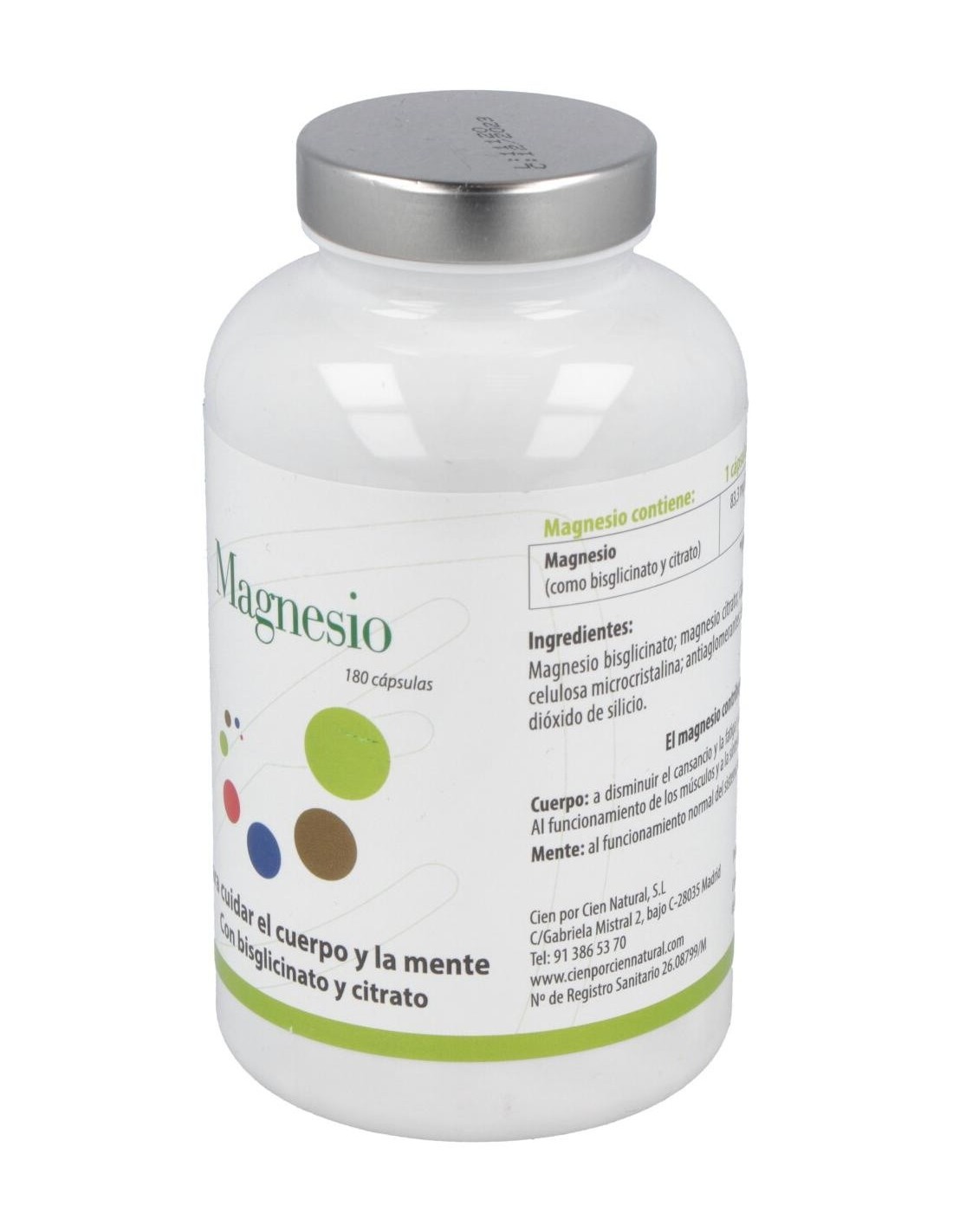 100% Natural Magnesio 180 cápsulas es un complemento alimenticio a base de magnesio que nos ayudará a cuidar nuestra mente y cuerpo. El magnesio es un nutriente que colabora a reducir el cansancio y fatiga de nuestro cuerpo, además de contribuir en nuestro metabolismo energético normal y a la síntesis proteica normal.