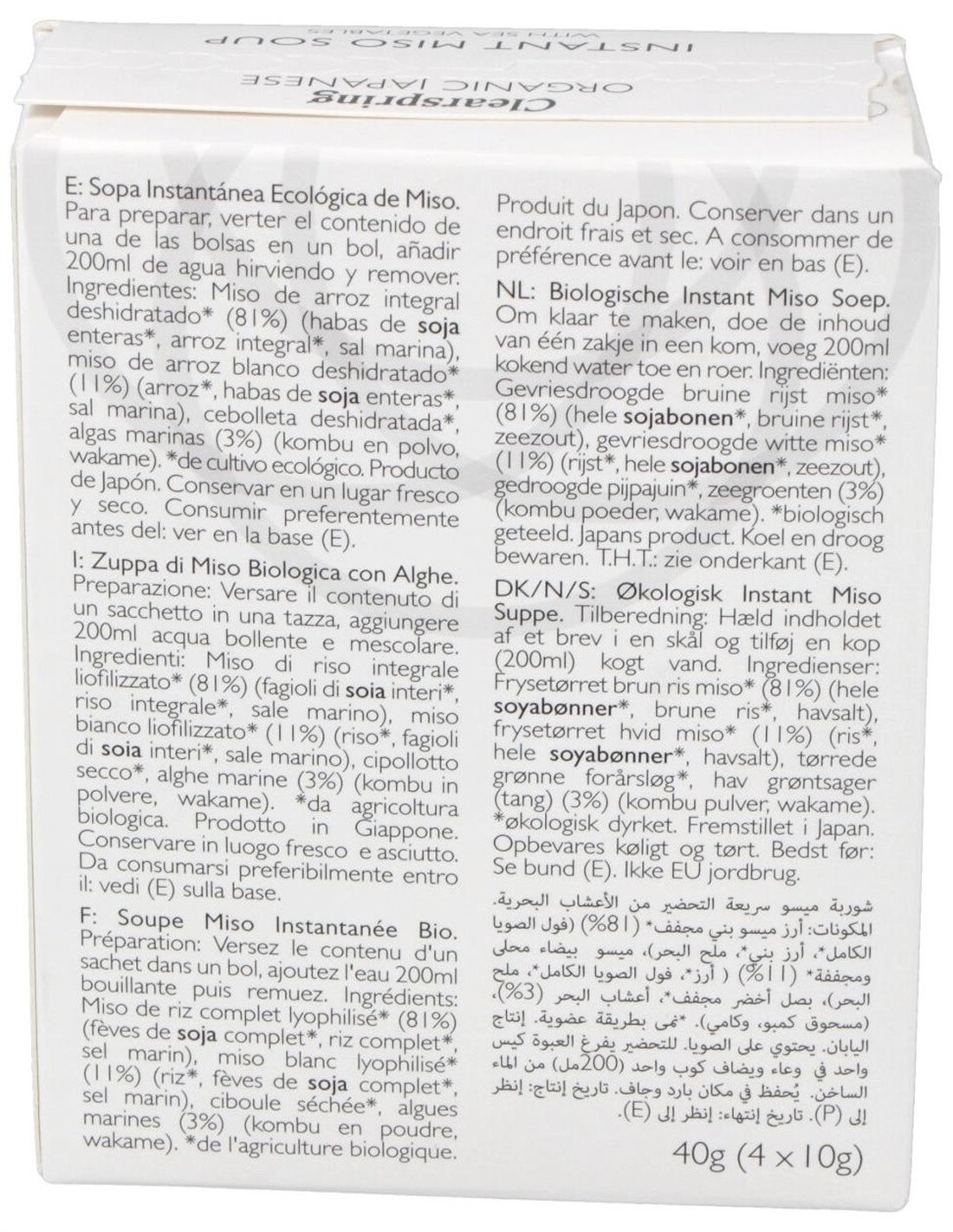 Sopa Miso/Algas Instant Bio 4x10 g de Clearspring