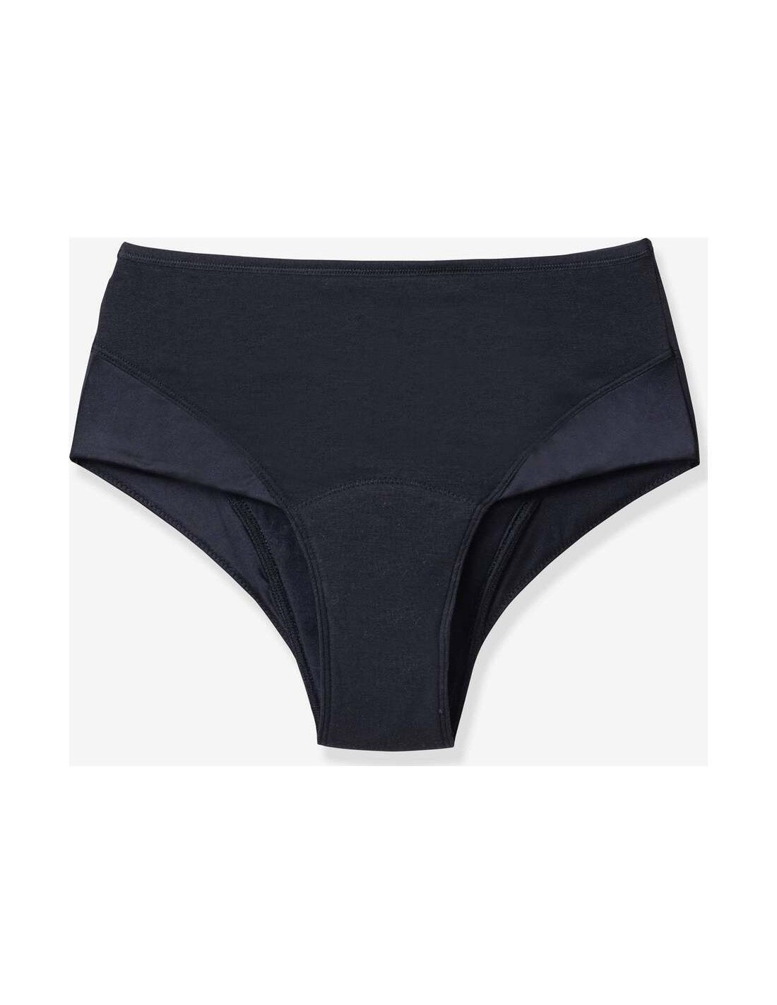 Capa exterior: 65% algodón, 35% elastano.\ Capas intermedias (sólo en el puente): Fibras naturales y poliéster. No contiene plástico (libre de PUL).\ Capa interior (sólo en el puente): 100% algodón orgánico.\ Cinturilla: 70% poliamida, 30% elastano.