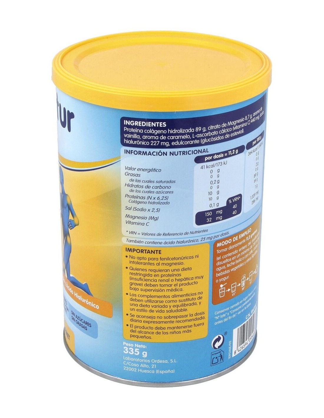 Complemento alimenticio en polvo a base de proteína colágeno hidrolizada (natural, muy asimilable y pura) enriquecida con magnesio, vitamina C y ácido hialurónico. Indicado para huesos, músculos, articulaciones y piel.