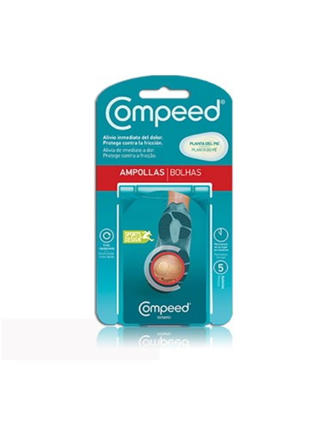 El diseño anatómico de Compeed® ampollas permite su adaptación a la planta del pie, permaneciendo en su sitio sin moverse varios días. Además, cuenta con un diseño con mayor grosor para proteger la presión.