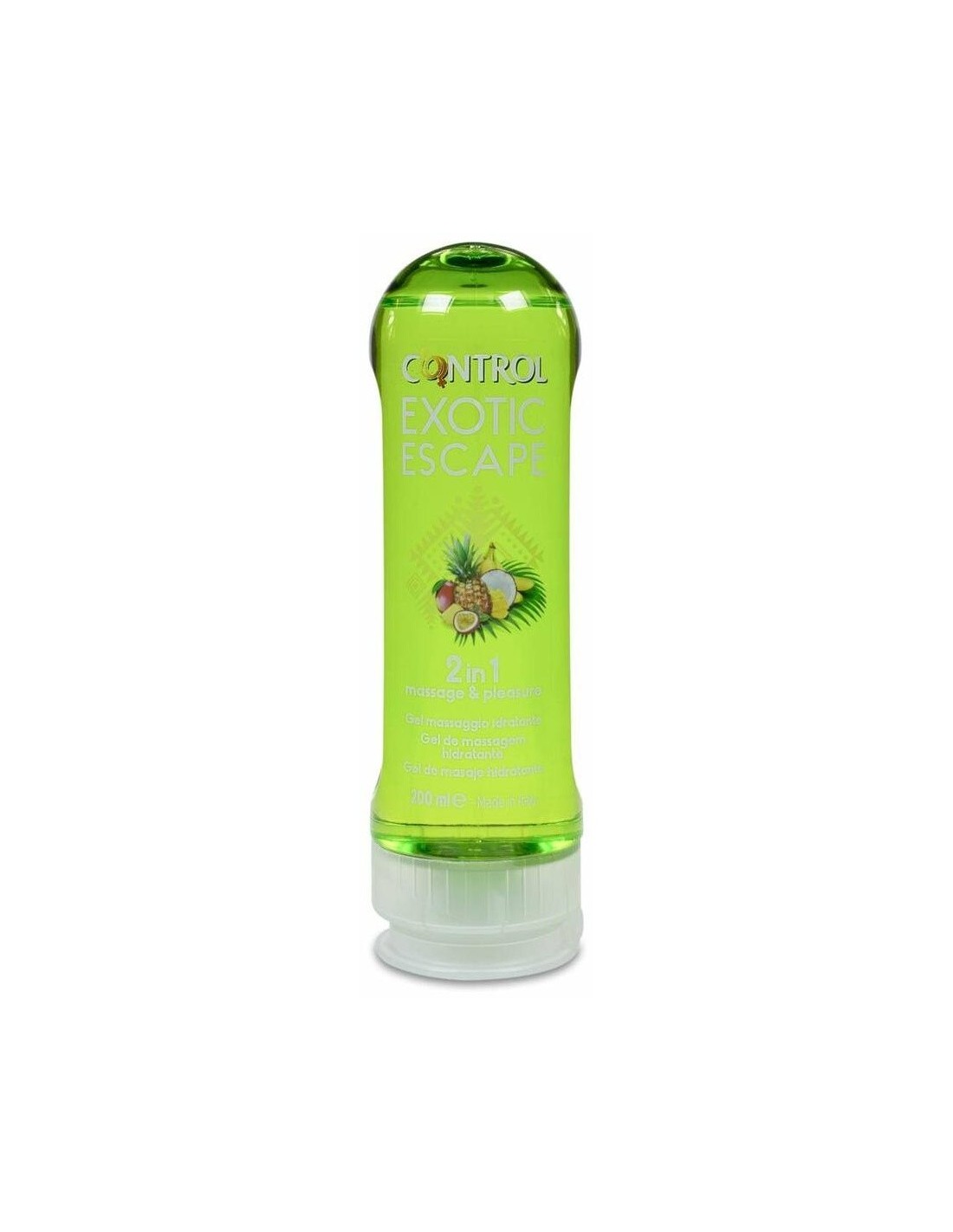 CONTROLGel de masaje 2 en 1 con un aroma exótico como las frutas de Sudamérica. Tiene una acción hidratante y estimulante que contribuye al bienestar, la tranquilidad y el equilibrio.
