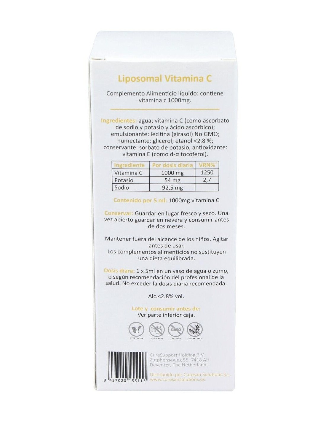Complemento alimenticio líquido que, por su aporte de vitamina C, contribuye a mantener la función normal del sistema inmune durante y después del ejercicio físico intenso, a la formación normal de colágeno para la función normal de los vasos sanguíneos, huesos, cartílago, función normal de las encías, función normal de la piel, etc.