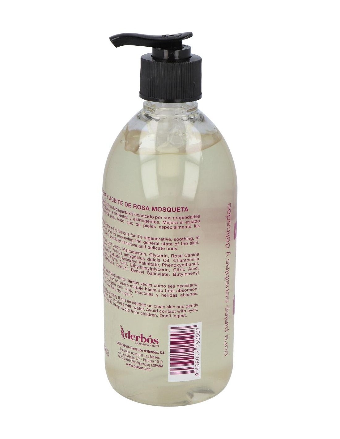 Derbós Gel Aloe Vera y Rosa Mosqueta 500ml es un gel que ayuda a cuidar las pieles sensibles y delicadas.