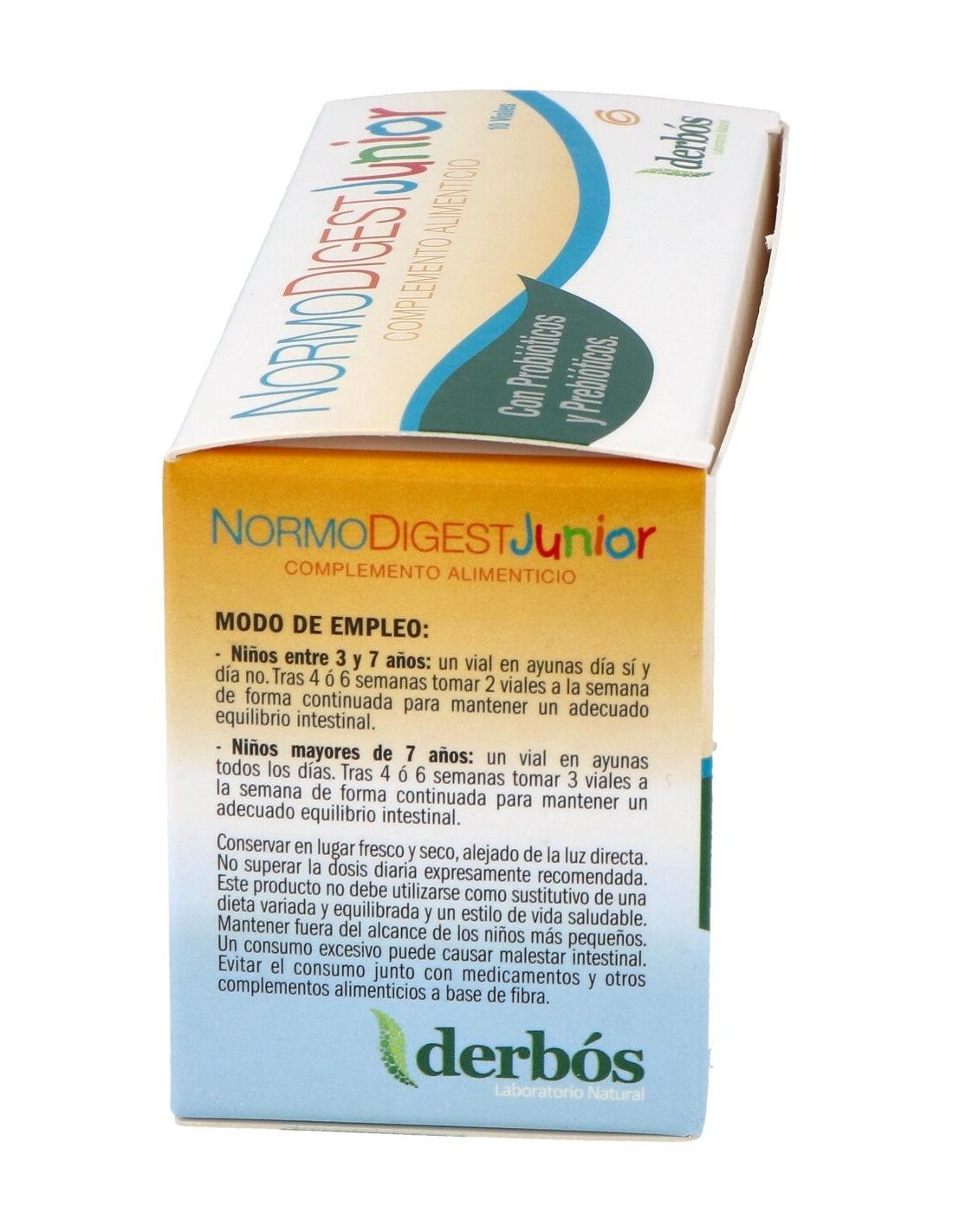 Derbos Normodigest Junior es un complemento alimenticio ayuda a activar la flora intestinal. Su fórmula con cepas bioactivas de bifidus y lactobacilos contribuye a la mejora de la asimilación de los alimentos y al refuerzo del sistema inmunitario.