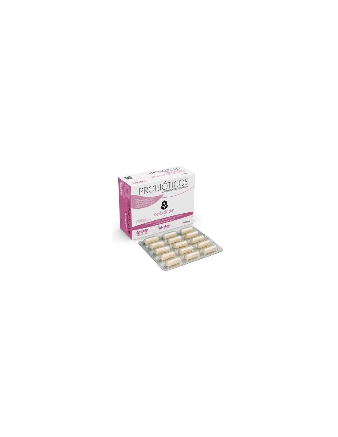 DERBOSComplemento alimenticio en cápsulas con probióticos y vitaminas. La Biotina, la Niacina y la Riboflavina contribuyen al mantenimiento de las mucosas en condiciones normales. Apto para veganos.