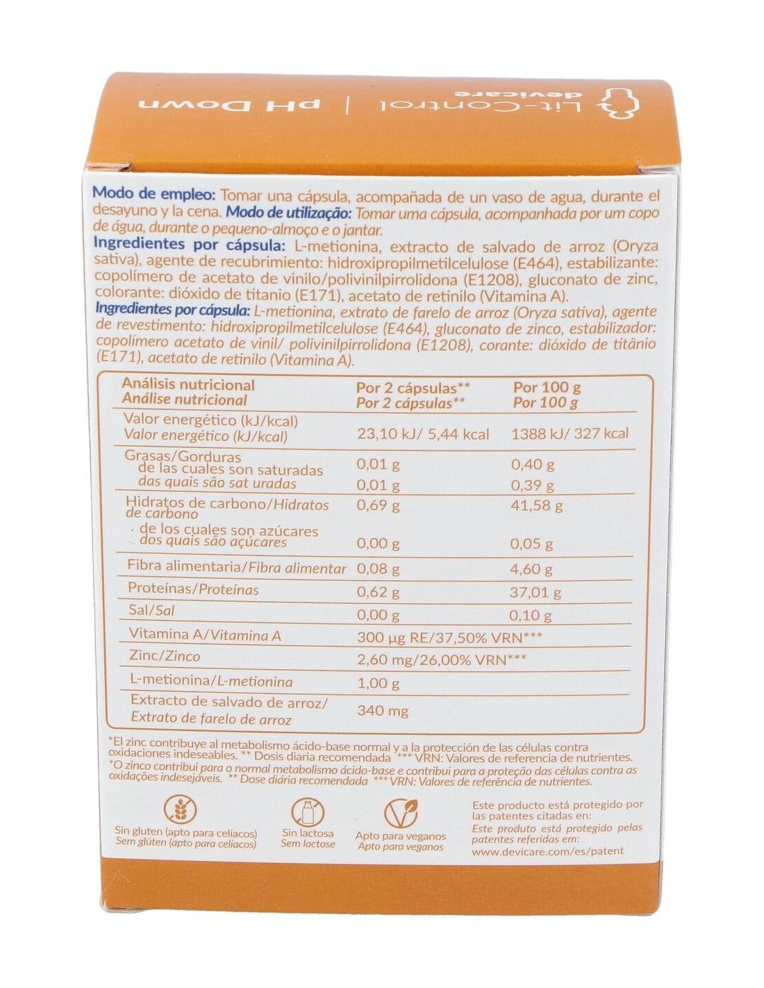 Suplemento que contiene L-metionina que permite disminuir el pH urinario, para contribuir al normal mantenimiento del sistema urinario. Apto para veganos.