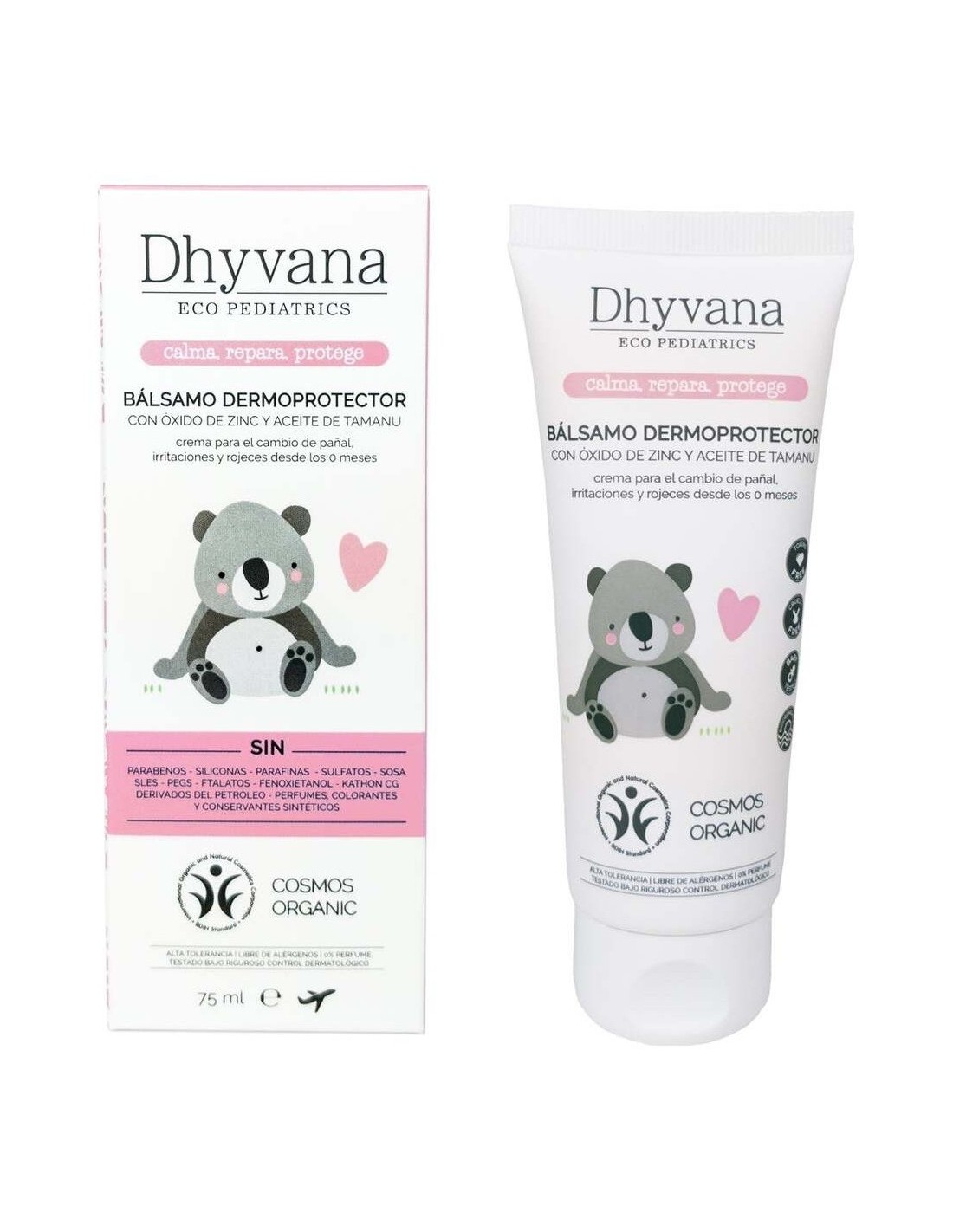 El Bálsamo Dermoprotector Eco Pediatrics® 75ml para bebés de Dhyvana contiene Aceite de Tamanu, Manteca de Karité y un 15% de Óxido de Zinc. Cuenta con una combinación de ingredientes que consigue un triple efecto en la piel irritada del bebé: la calma, la repara y la protege frente a las agresiones externas. Este bálsamo dermoprotector con Aceite de Tamanu, es perfecto para el cambio de pañal, ya que ayuda a prevenir irritaciones y rojeces causadas por el pañal en la zona del culito y en los pliegues cutáneos. Es apto para pieles sensibles y atópicas y puede aplicarse desde los 0 meses de edad. Beneficios del Bálsamo Dermoprotector para bebés de Dhyvana:- Calma y repara la piel irritada del bebé