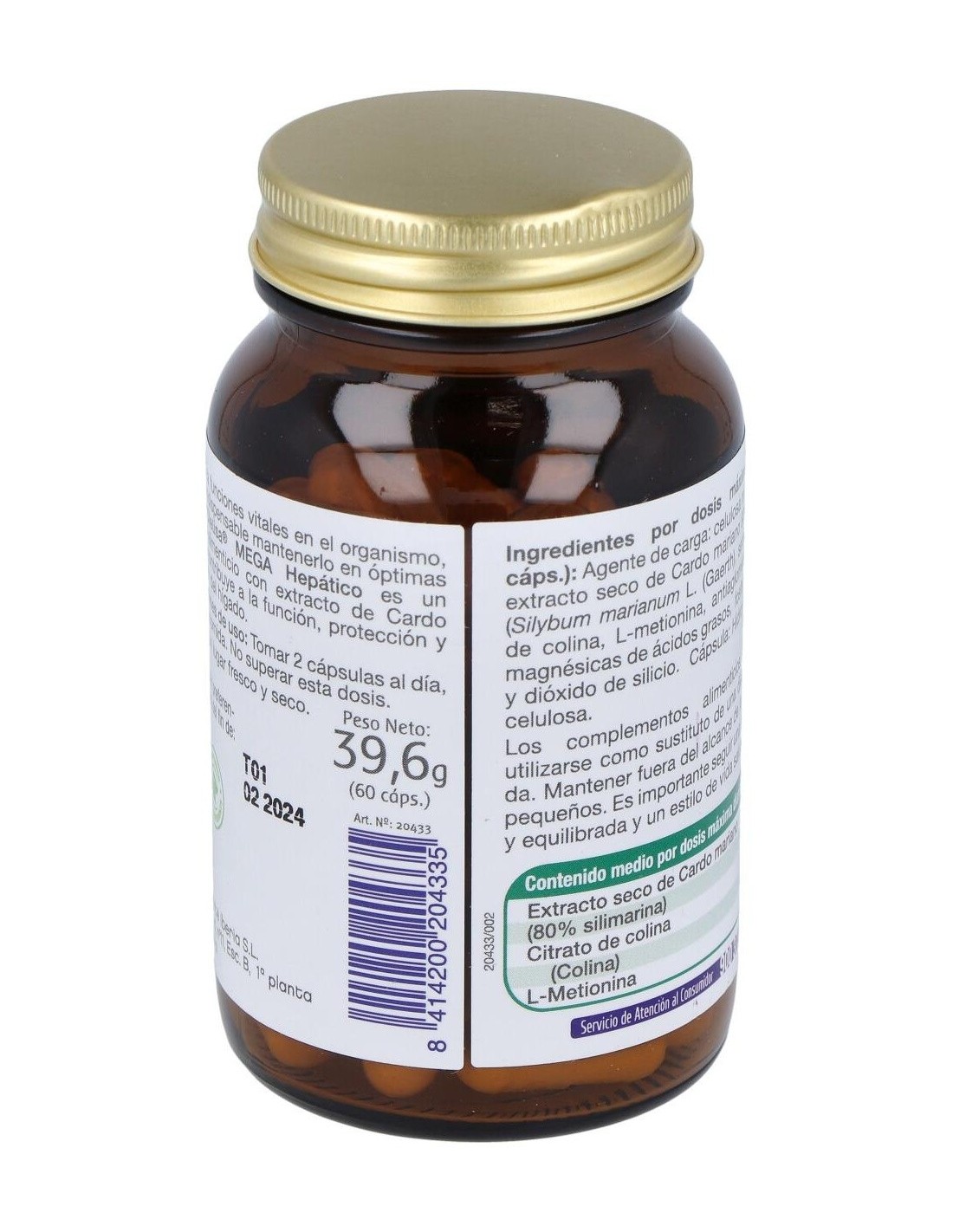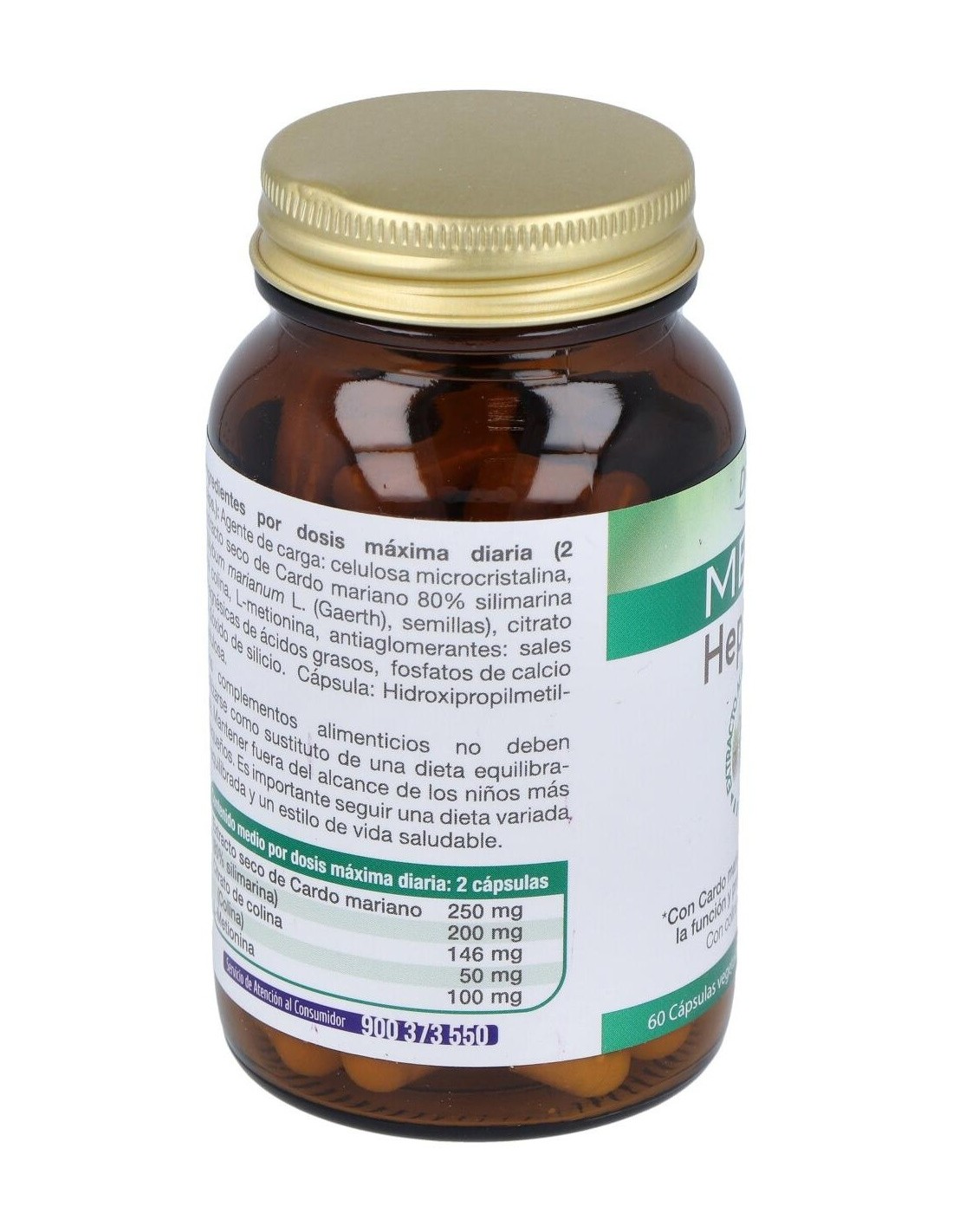 AGENTE DE CARGA: CELULOSA MICROCRISTALINA, EXTRACTO SECO DE CARDO MARIANO 80% SILIMARINA (SILYBUM MARIANUM L. (GAERTH), SEMILLAS): 250 MG (200 MG SILIMARINA), CITRATO DE COLINA: 146 MG (50 MG COLINA), L-METIONINA: 100 MG, ANTIAGLOMERANTES: SALES CÁLCICAS DEL AC. ORTOFOSFÓRICO, DIÓXIDO DE SILICIO Y SALES MAGNÉSICAS DE ÁCIDOS GRASOS. CÁPSULA VEGETAL: HIDROXIPROPILMETILCELULOSA, COLORANTE: DIÓXIDO DE TITANIO.