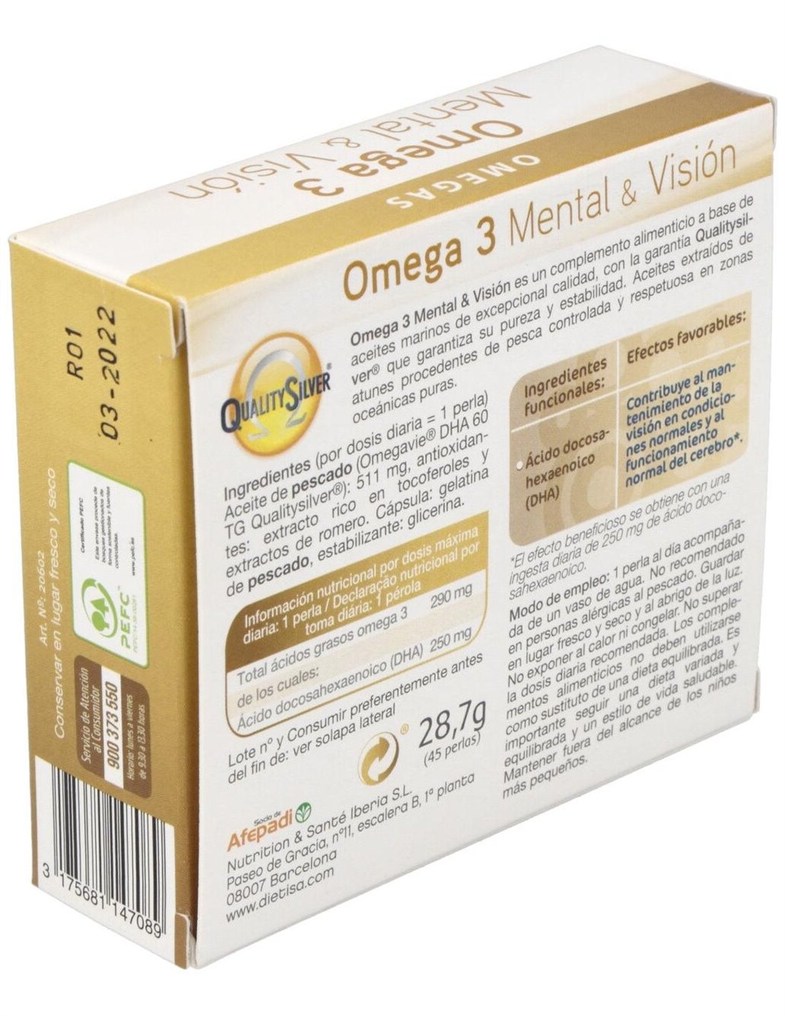 Dietisa omega 3 mental & visión es un complemento alimenticio que contribuye al mantenimiento de la visión en condiciones normales. Gracias a su formulación ayuda a mantener el funcionamiento del cerebro.