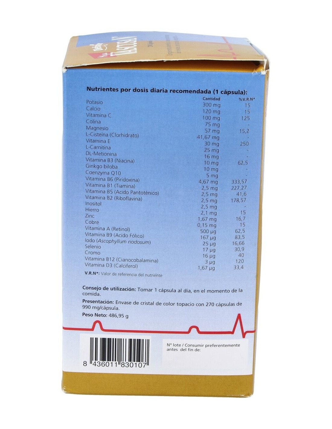 La vitamina B1 de su formulación contribuye al funcionamiento normal del corazón. La vitamina C contribuye a la formación normal de colágeno para ayudar al funcionamiento normal de los vasos sanguíneos.