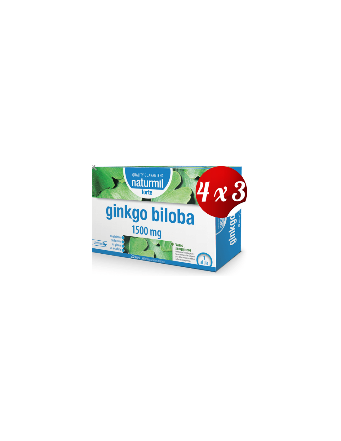 Pack 4x3 uds Ginkgo Biloba Forte 1500Mg. 20Amp. de Di