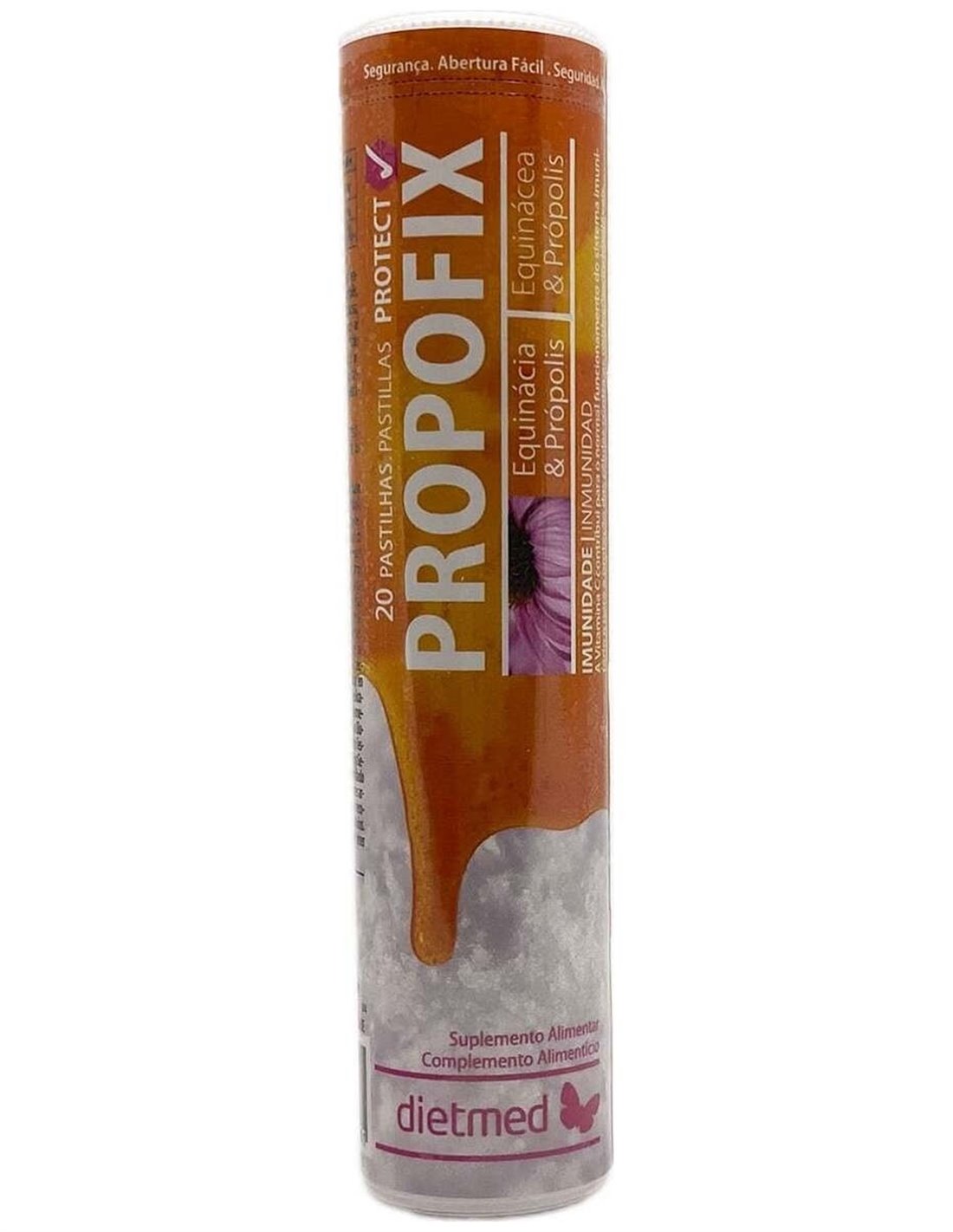 Sorbitol, azúcar granulado, Extracto seco de própolis, Echinacea purpurea L. (Equinácea; Extracto de la raíz conteniendo al menos 4% de polifenoles), ácido L ascórbico, aroma de Mentha x piperita L. (Menta; aceite esencial), antiaglomerantes: estearato de magnesio dióxido de silicio.