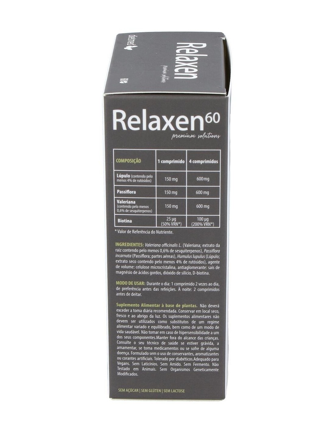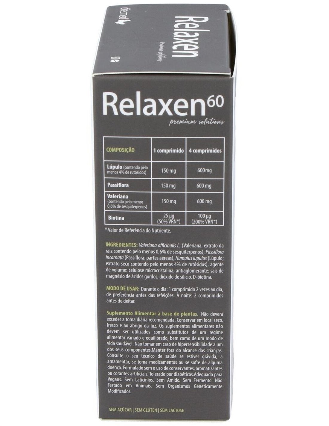 Pasiflora (360 mg), Lúpulo (360 mg), Passiflora (360 mg), Valeriana (288 mg), Vitamina B8 / biotina / vitamina H / coenzima R (75 g), Biotina (75 µg).