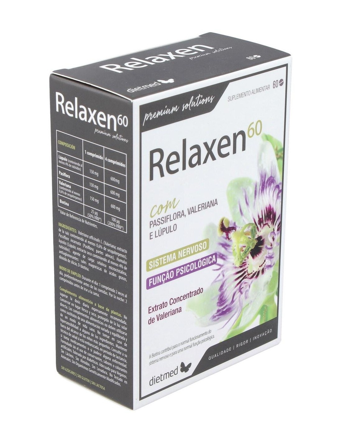 Complemento alimenticio natural elaborado con base de Valeriana y Pasiflora de la marca Dietmed, la rica composición contribuye a la función normal del sistema nervioso y a la función psicológica normal. Los ingredientes principales esta son plantas utilizadas tradicionalmente para ayudar a regular el sueño, con acción calmante, tranquiliza y mantiene el equilibrio del sistema nervioso. Además el efecto se ve complementado por la adición de lúpulo. Habitualmente se toman como ayuda para poder conciliar el sueño en época donde estamos excesivamente nerviosos.