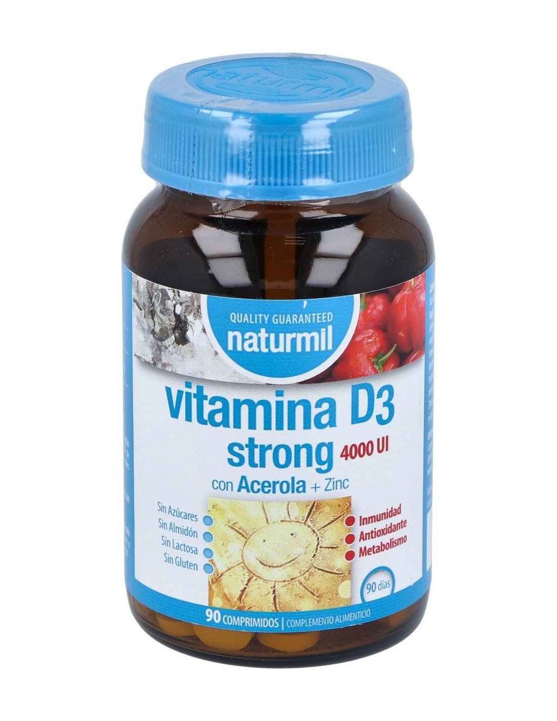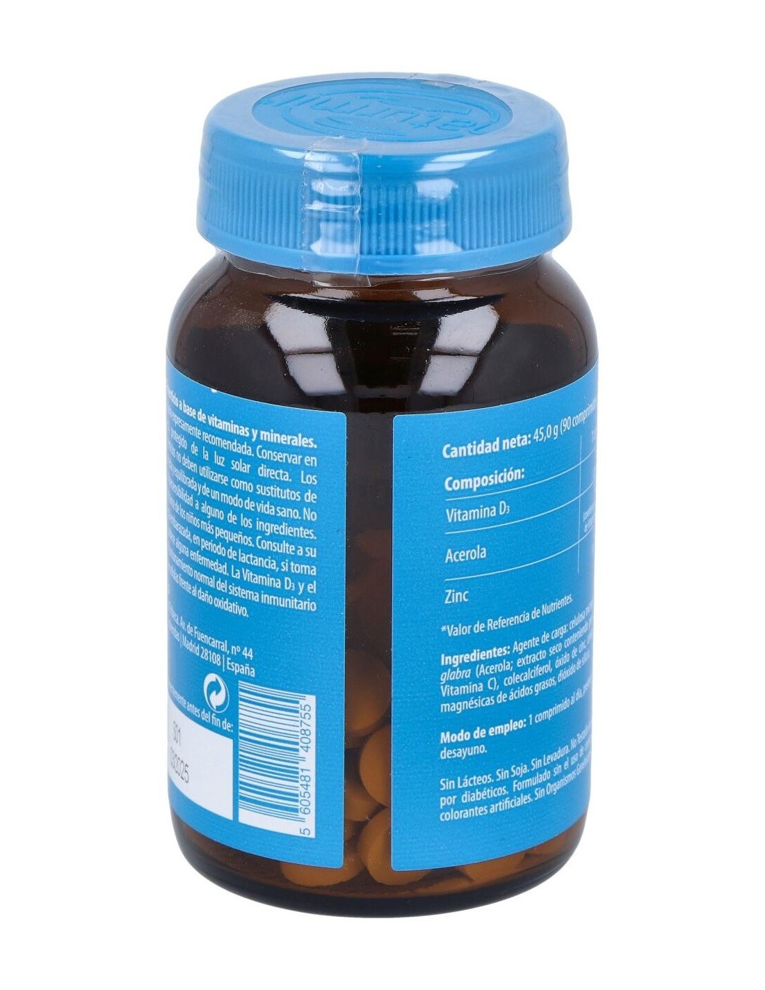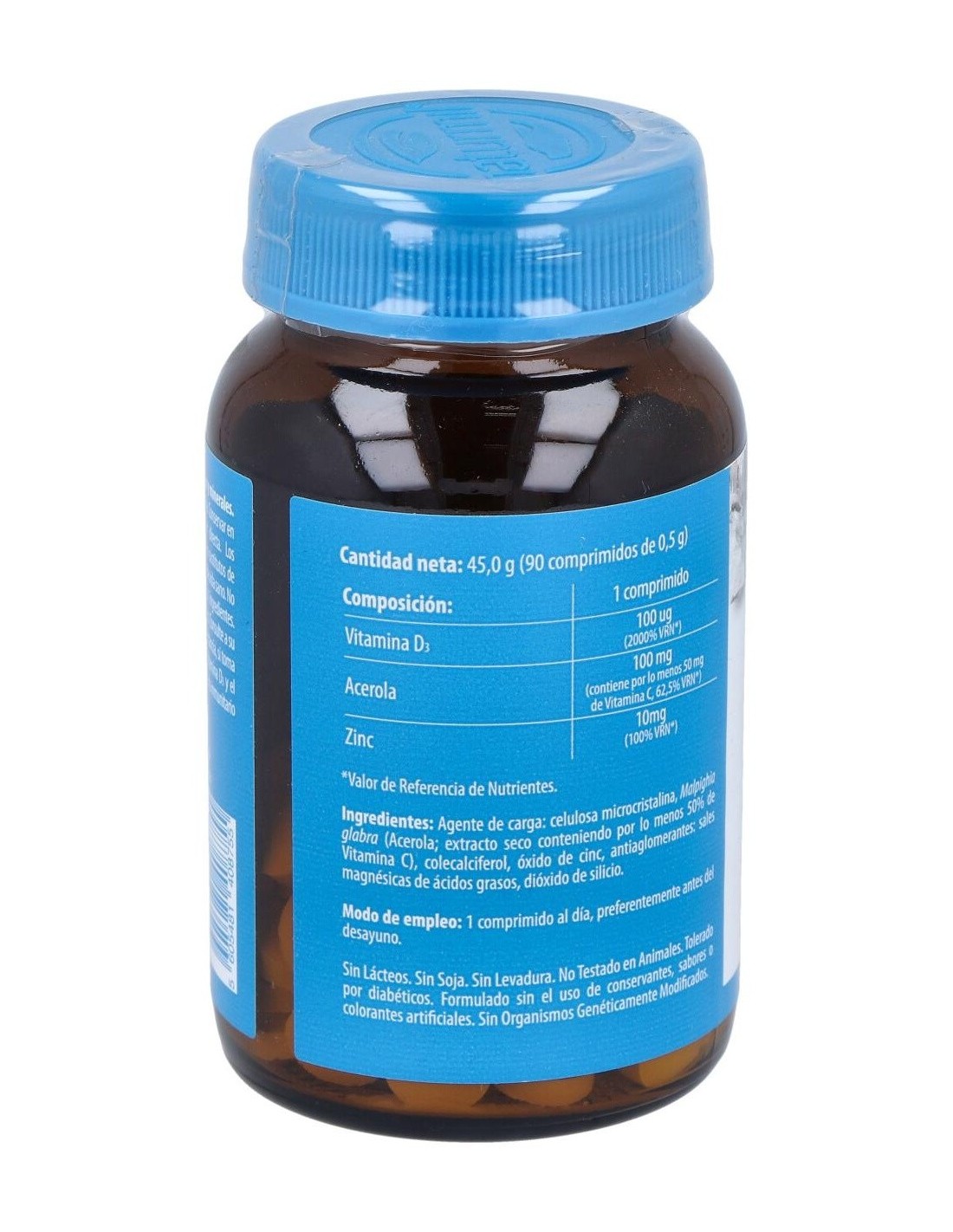 Composición activa por comprimido: 100 mcg de vitamina D3 (4.000 UI). 100 mg de acerola (50 mg de vitamina C). 10 mg de zinc.