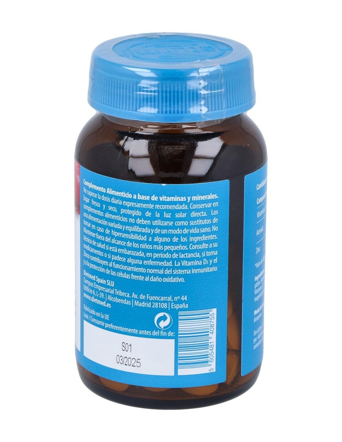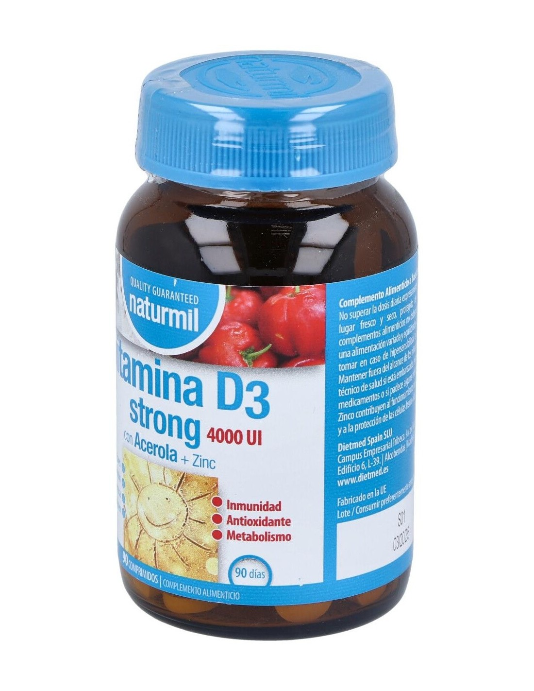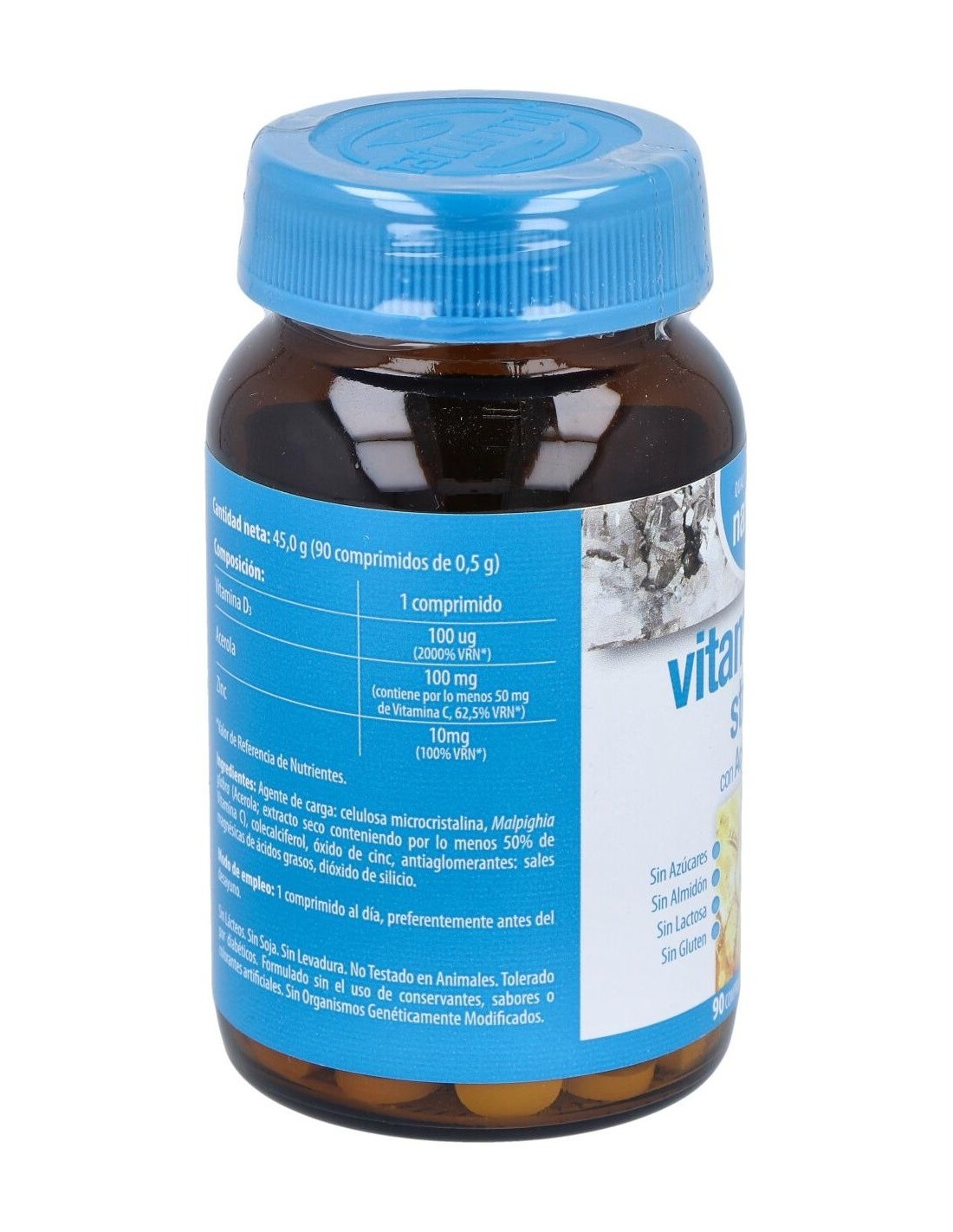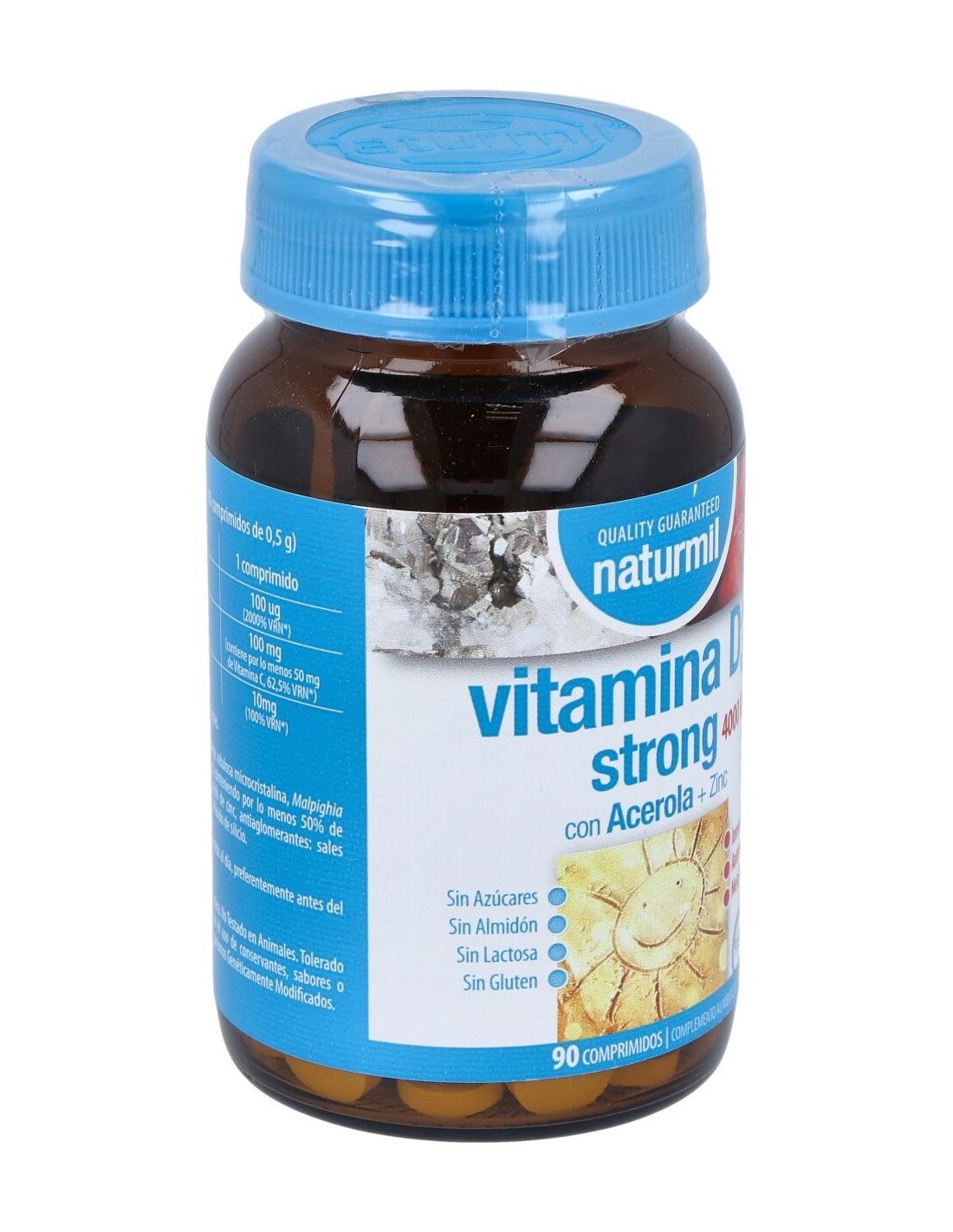 Composición activa por comprimido: 100 mcg de vitamina D3 (4.000 UI). 100 mg de acerola (50 mg de vitamina C). 10 mg de zinc.