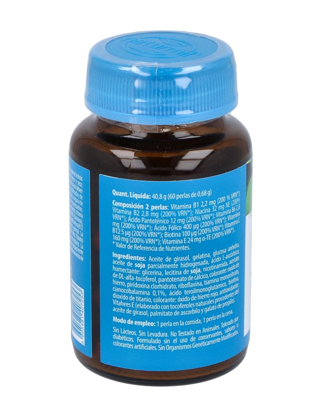 Complemento alimenticio Complejo B de Naturmil, formulado con vitamina B1 (tiamina), vitamina B6, biotina, ácido pantoténico, niacina, vitamina B12 vitamina C y ácido fólico que contribuyen al productor normal de metabolismo de la energía, y a la función normal del sistema inmune. También contiene vitamina E que contribuye a la protección de las células contra la oxidación indeseable.Sin azúcar. Sin almidón. Sin lactosa. Sin gluten.