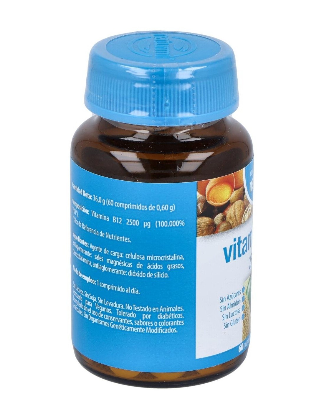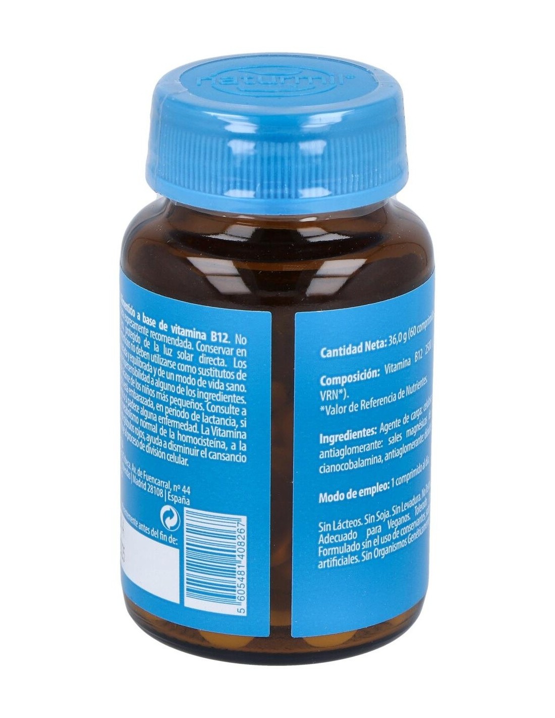 Complemento alimenticio vegano, a base de vitamina B12. Contribuye al metabolismo normal de la homocisteína, a la formación de glóbulos rojos, ayuda a disminuir el cansancio y la fatiga. Contribuye al proceso de división celular. Favorece el normal funcionamiento psicológico. Ayuda a prevenir la anemia y aporta energía, recomendando tomar en ayunas. Se absorbe mejor junto con la vitamina B1 y cobre. Contribuye a la formación del ADN, el material genético presente en todas las células.