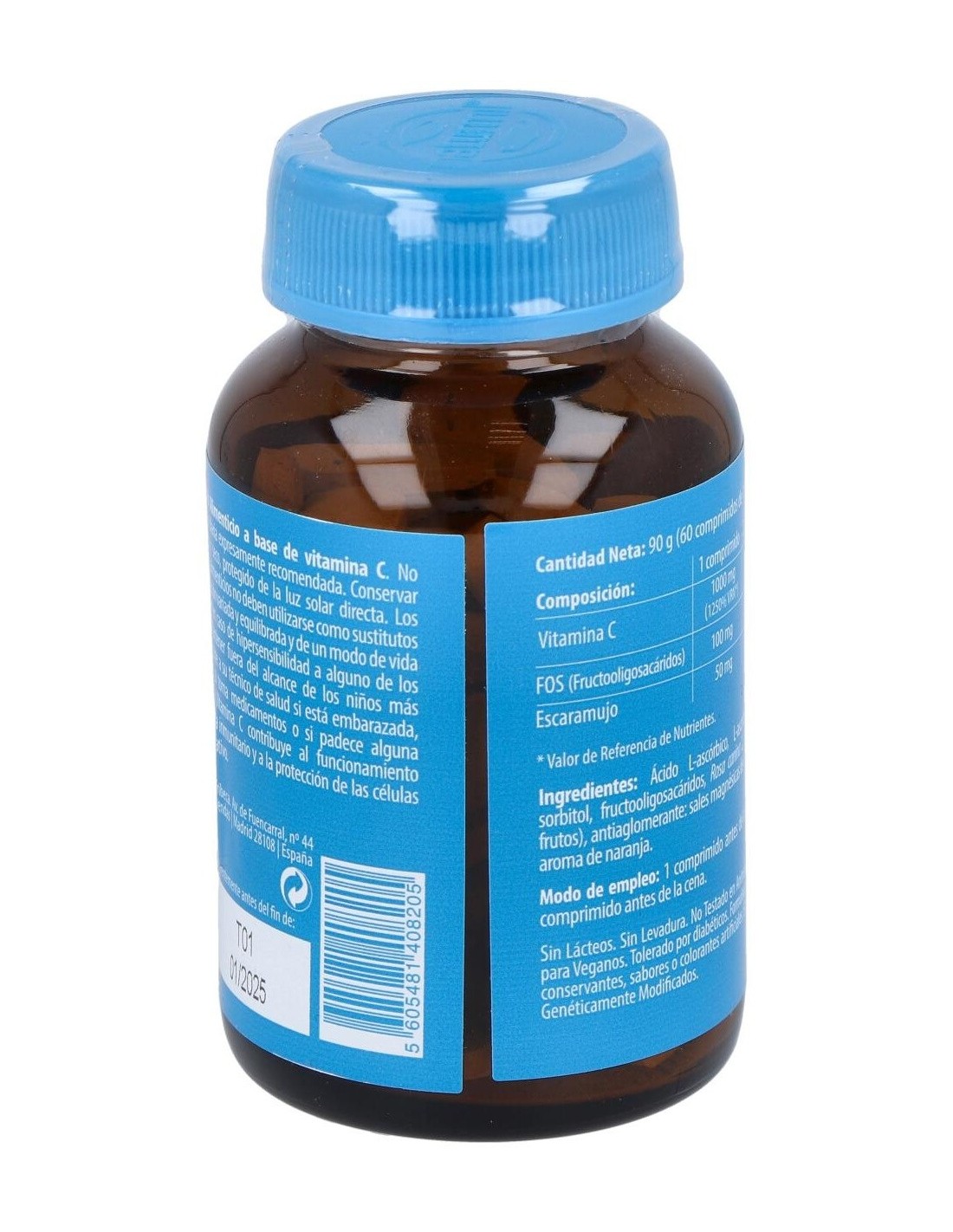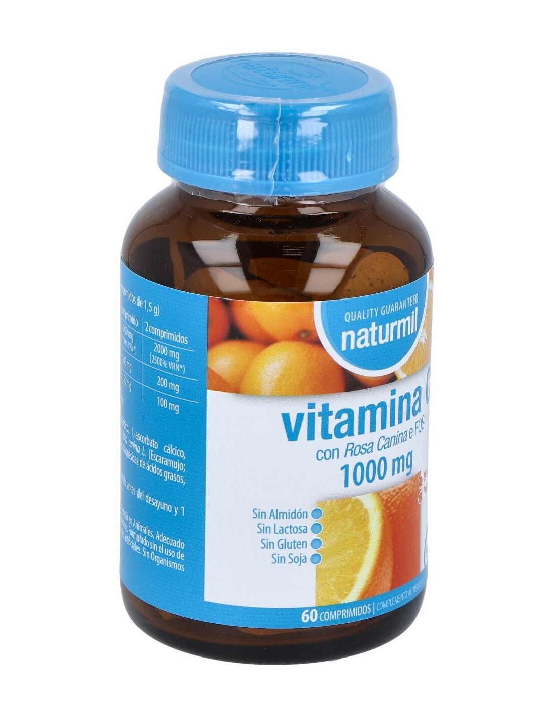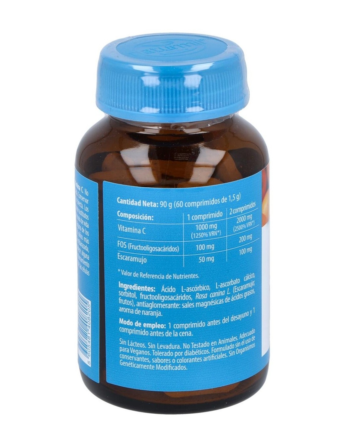Vitamina C 2000 mg, Fructo-oligosacáridos 200 mg, Rosa Canina 100 mg.