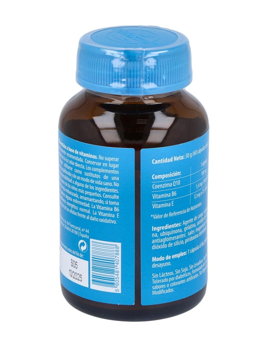Agente de carga: celulosa microcristalina, ubiquinona, gelatina, acetato de DL-alfa tocoferilo, antiaglomerantes: estearato de magnesio, dióxido de silicio, clorhidrato de piridoxina.