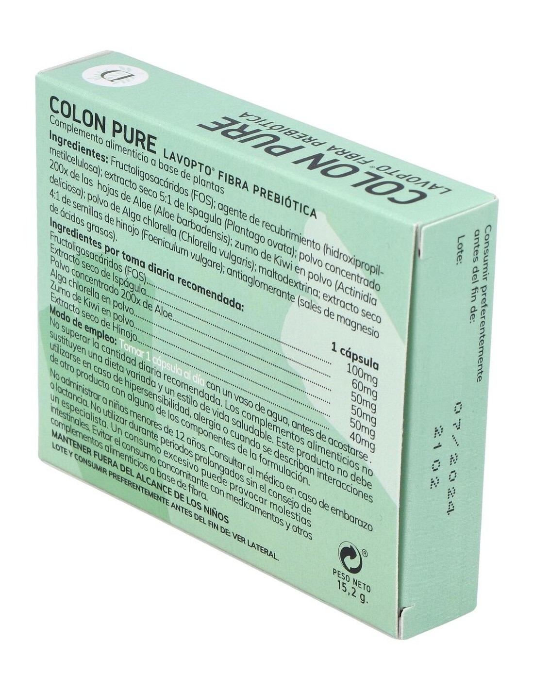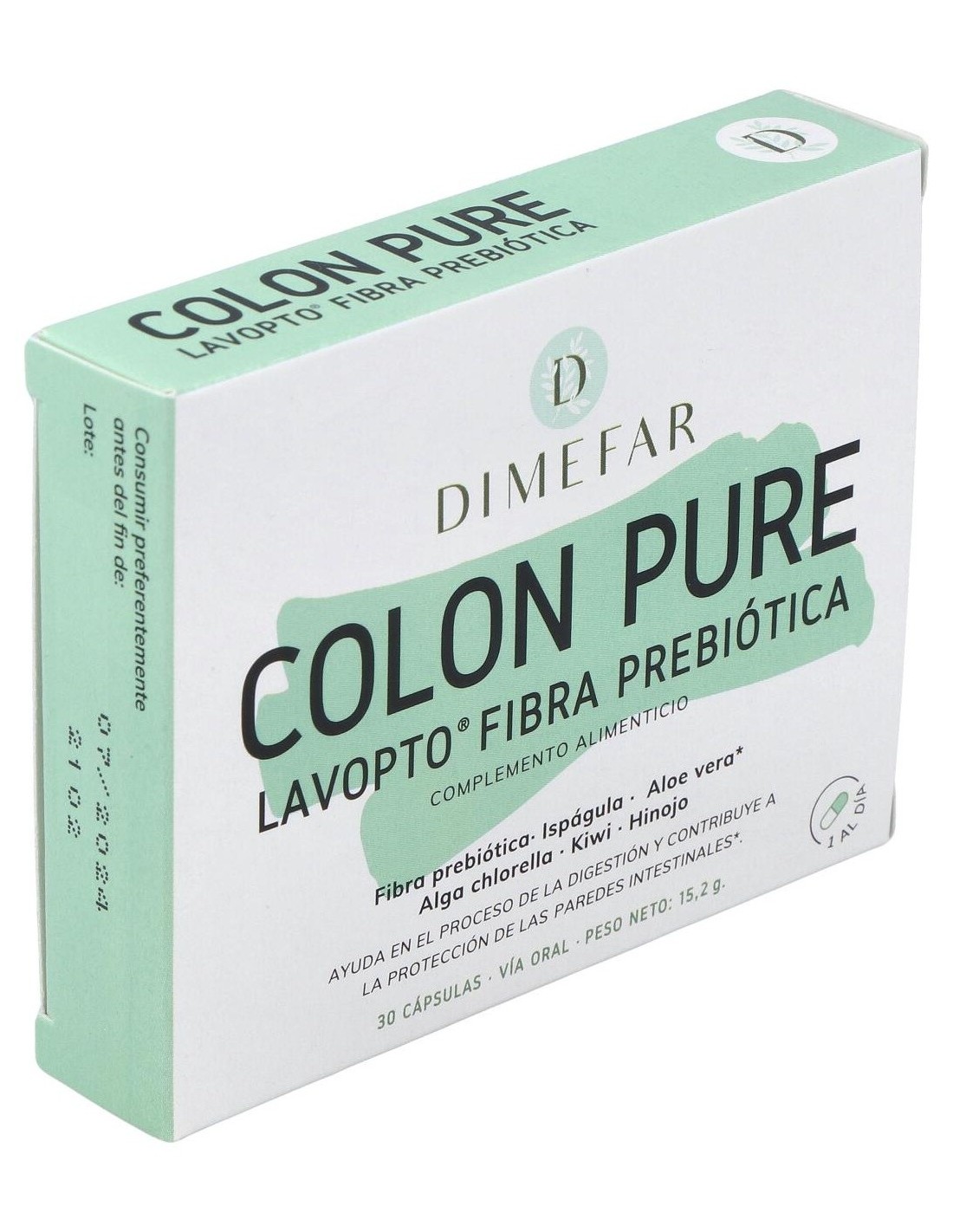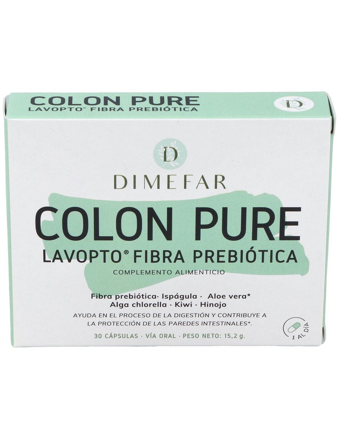 Dimefar Lavopto 30Cáps es un complemento alimenticio que aporta cinco ingredientes activos que contribuyen a detoxificar el colon y a mantenerlo en buen estado de salud. Estos componentes son aloe vera gel, fibra prebiótica, extracto de ruibarbo e hinojo y alga chlorella, la cual actúa como potente limpiadora de toxinas, metales pesados y otras sustancias indeseables.