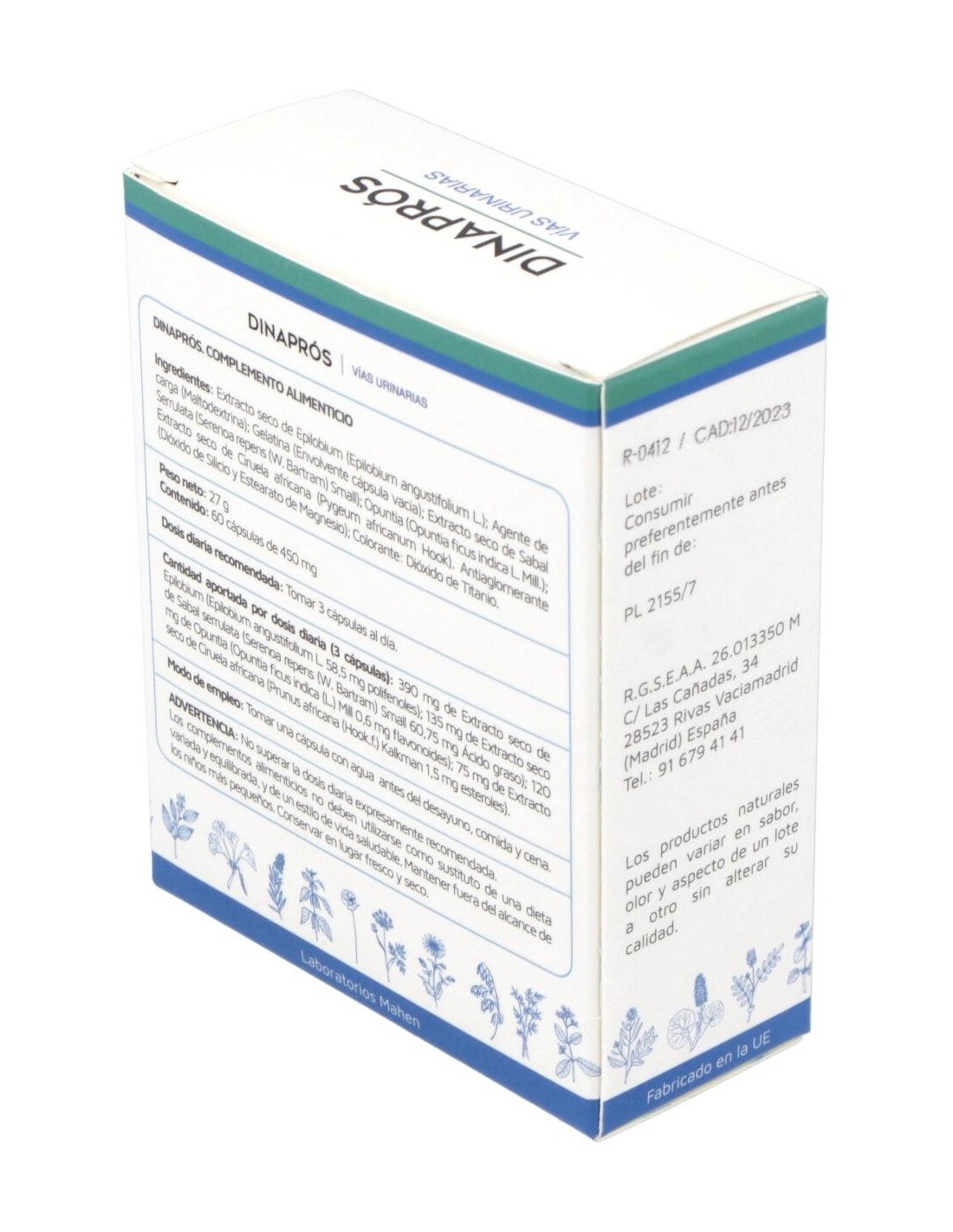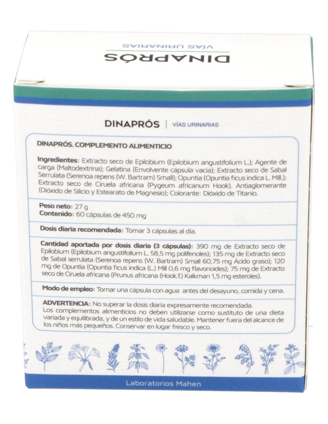 Dinadiet Dinapros 22 es un complemento dietético indicado para reparar problemas que afectan a la próstata, como crecimiento irregular de la gándula o el conducto porstático. Reduce las inflamaciones en esta zona, alivia las irritaciones que provocan la retención de la micción y disminuye el dolor.