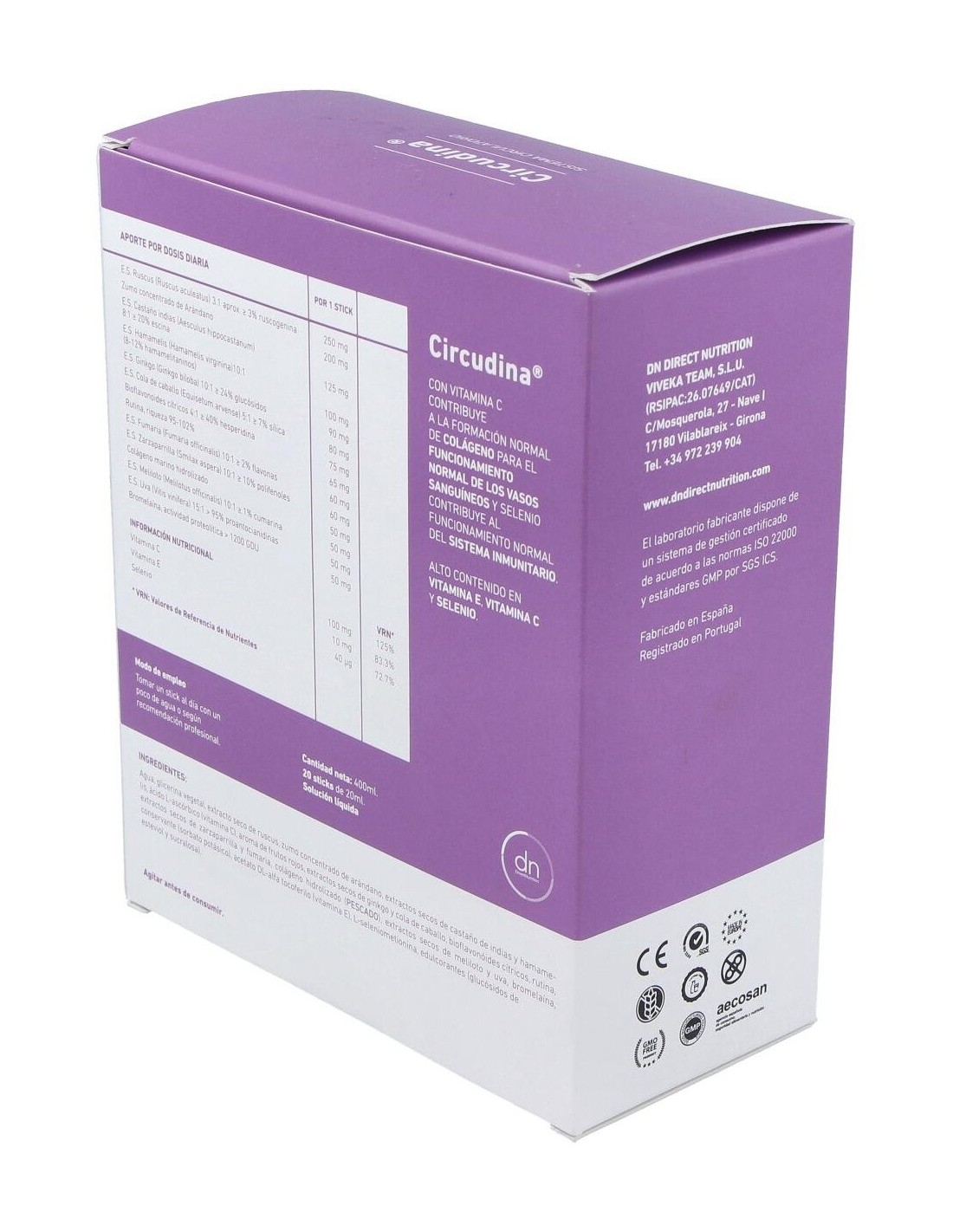 Complejo herbario a base de extractos secos de plantas, vitamina E, bioflavonoides, OPC (proantocianidinas) y colágeno marino hidrolizado enzimáticamente de acción sinérgica para ayudar a una circulación normal.