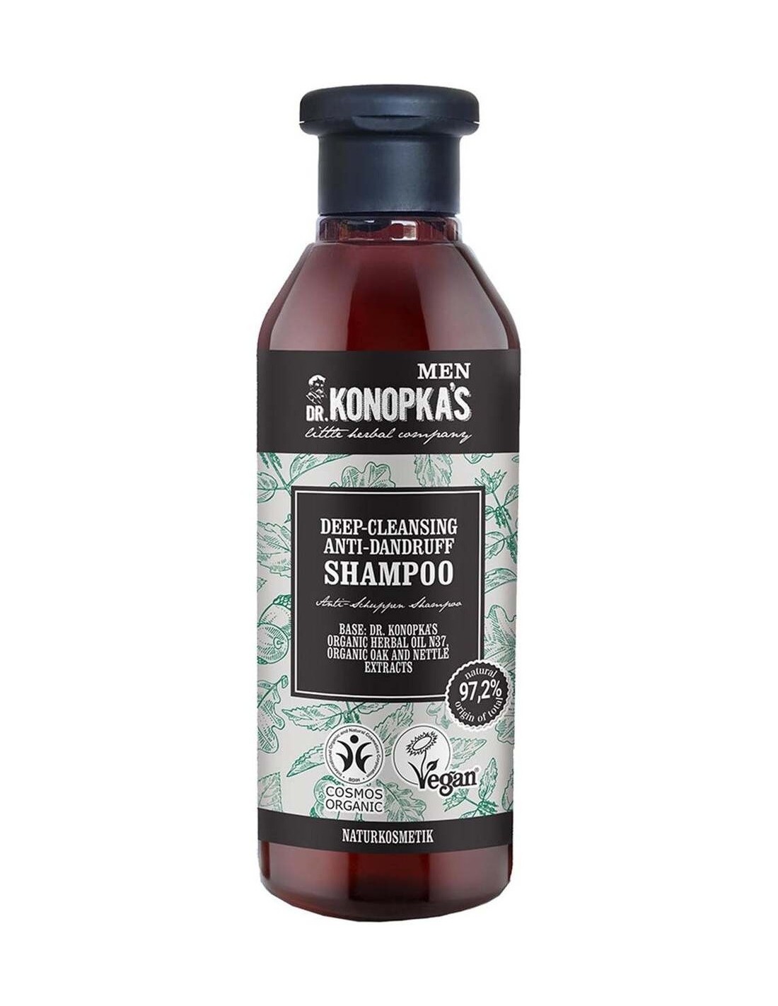 DR. KONOPKA´SEste champú contiene una poderosa mezcla del aceite de hierbas orgánico n.º 37 del Dr. Konopka y los extractos orgánicos de roble y ortiga. Proporciona una limpieza profunda al cabello y el cuero cabelludo, elimina la caspa, restablece el equilibrio del cuero cabelludo, calma la piel y nutre y favorece un cabello de aspecto saludable. Certificado BDIH Cosmos Organic y Vegan.