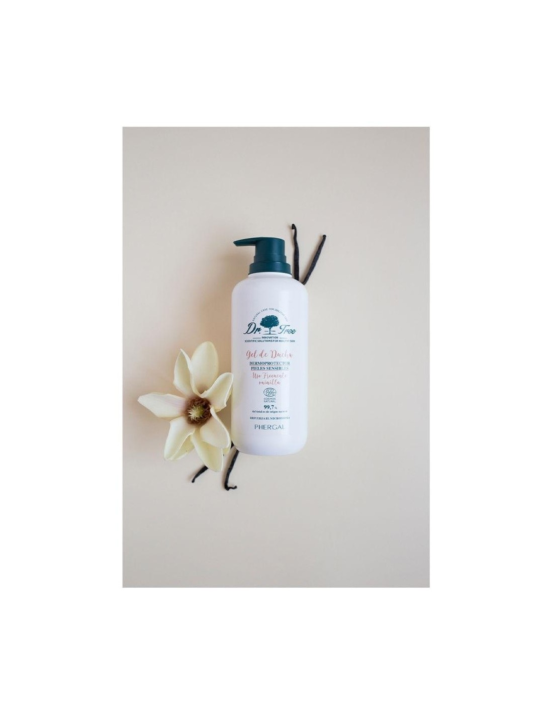 Gel de ducha dermoprotector de higiene ultrasuave que protege la piel y fortalece el microbioma. Cuida, limpia e hidrata tu piel con aceite de chía. Sus agentes de limpieza ultra-suaves respetan el manto hidrolipídico natural de la piel, y sus activos protectores naturales ayudan a proteger y fortalecer la barrera cutánea. Indicada para pieles sensibles, uso diario limpieza. Aroma de vainilla. Certificado Cosmos Natural Ecocert.