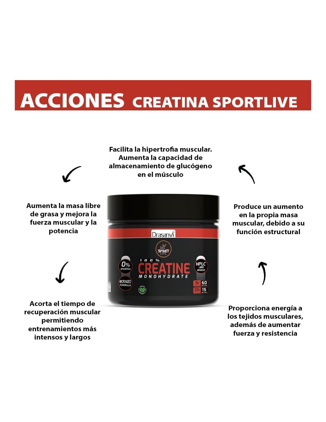 DRASANVI SPORT LIVELa Creatina es una sustancia producida por nuestro cuerpo (principalmente, en hígado, riñones y páncreas) a partir de tres aminoácidos: Glicina, Arginina y Metionina. Esta sustancia es segregada al torrente sanguíneo y distribuida a las diferentes células del organismo. Por sus funciones en el organismo, la Creatina es uno de los complementos más utilizados en deportistas.