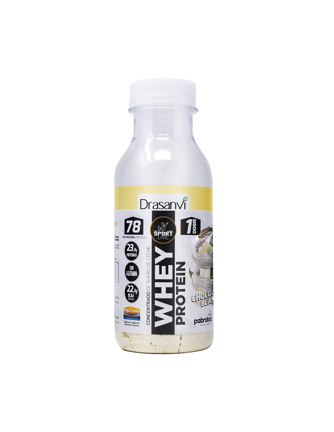 Botella Monodosis Whey Protein Concentrado Chocolate Blanco 30G Sport Live Drasanvi