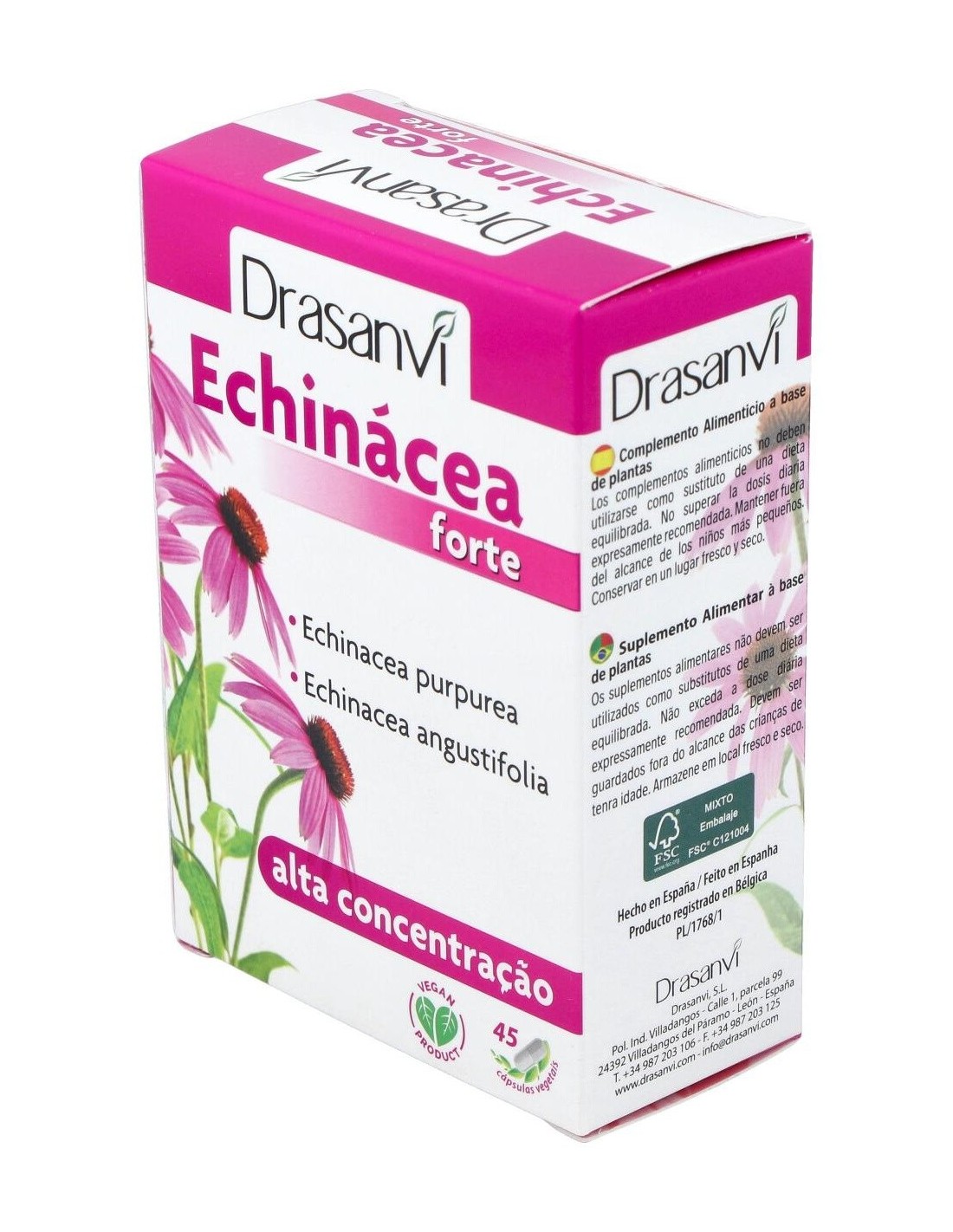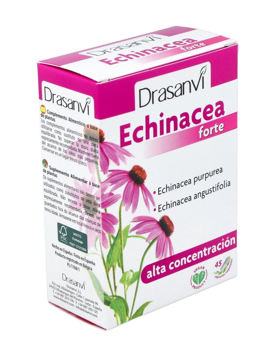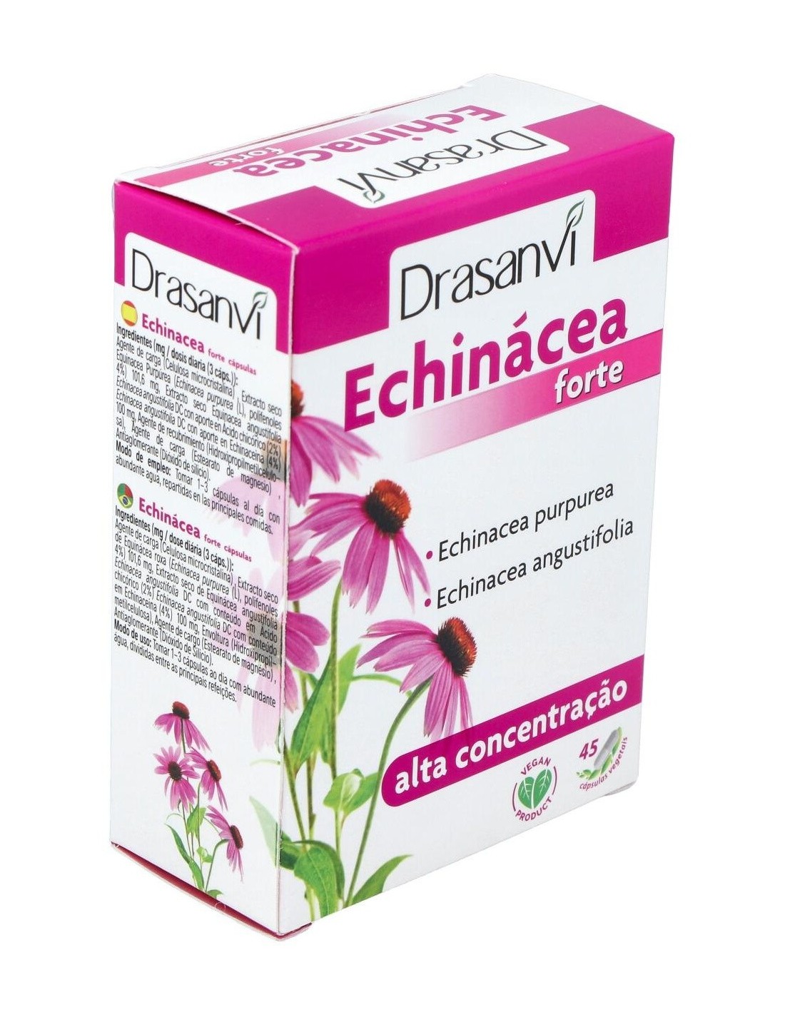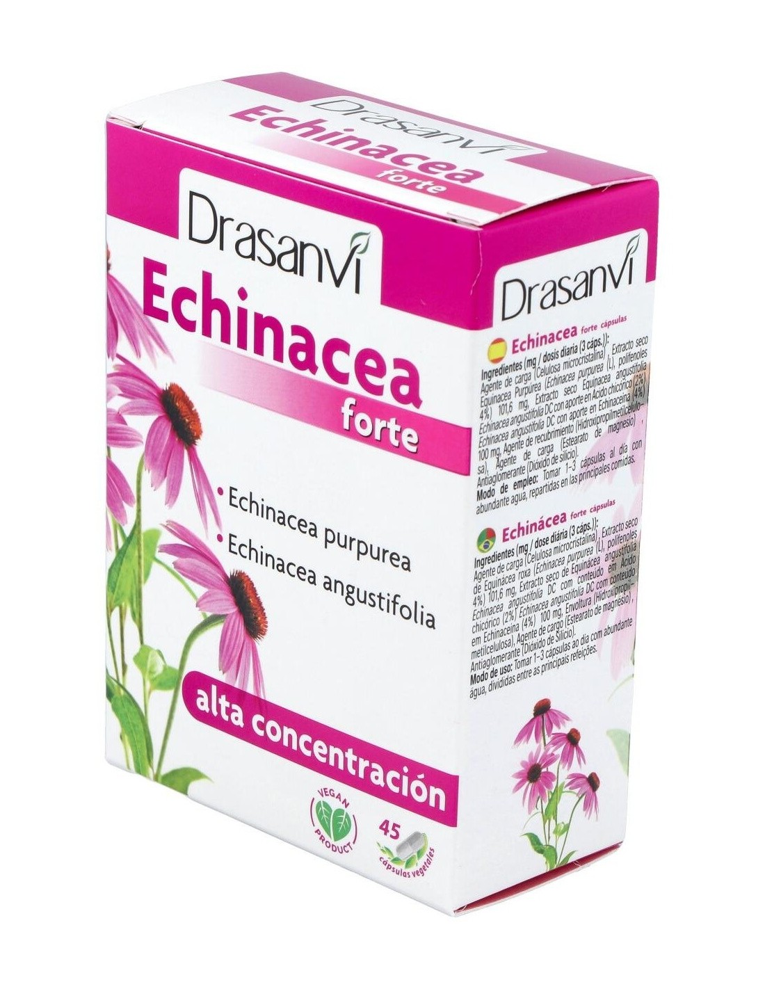 Complemento alimenticio que integra en una cápsula dos especies de Echinacea: Echinacea purpurea y Echinacea angustifolia, ambas añadidas en forma de extractos secos estandarizados. La estandarización asegura una homogeneidad en la composición. Ayuda a reforzar las defensas.