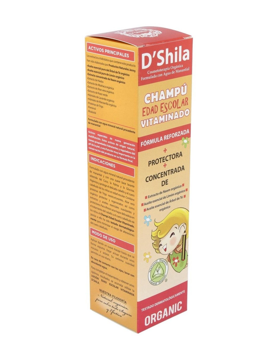 D'shila champú vitaminado especial edad escolar consigue mantener el cabello limpio y suave durante mucho más tiempo. Posee una suave base lavante, formulada con almidón de maíz, que consigue eliminar todos los piojos acumulados en la raíz.