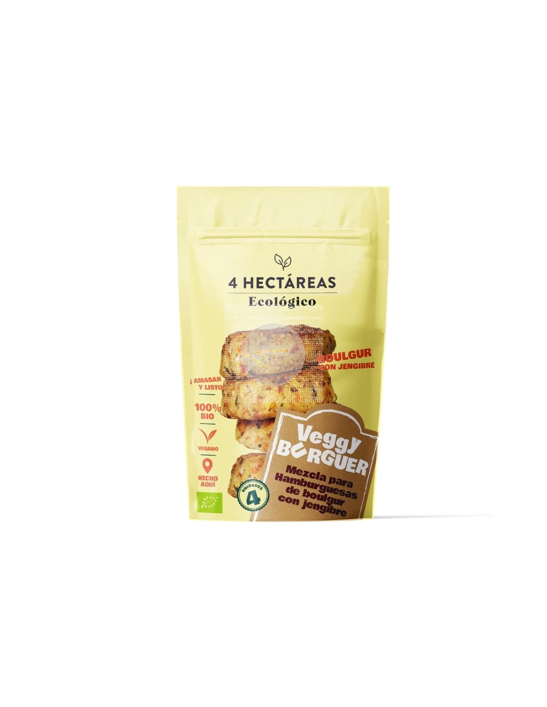 ECOSALIMVeggy Burguer Bulgur con Jengibre Bio 160gr 4 Hectáreas, mezcla para hamburguesas vegetales a base de cereales, legumbres, semillas, jengibre y hortalizas.