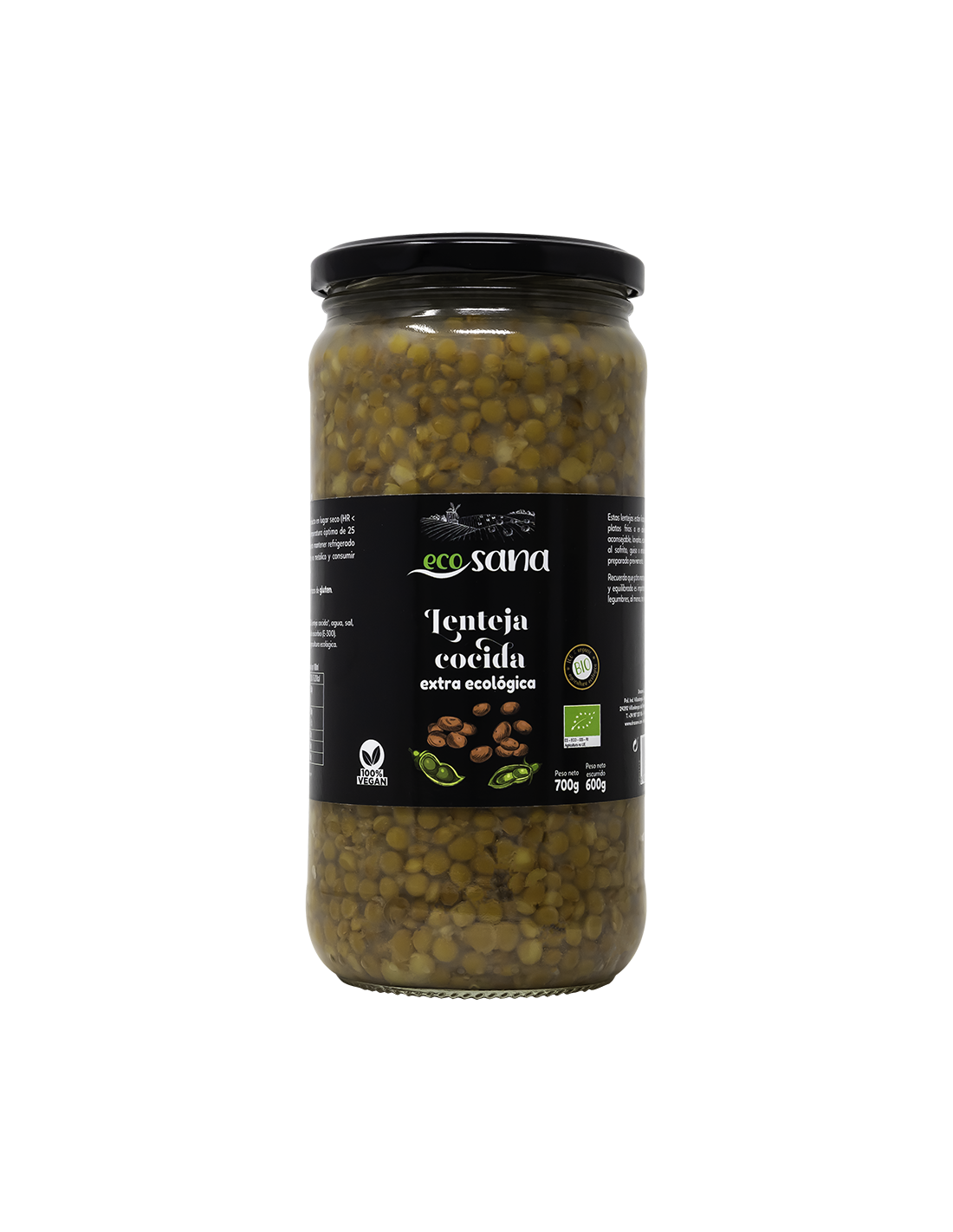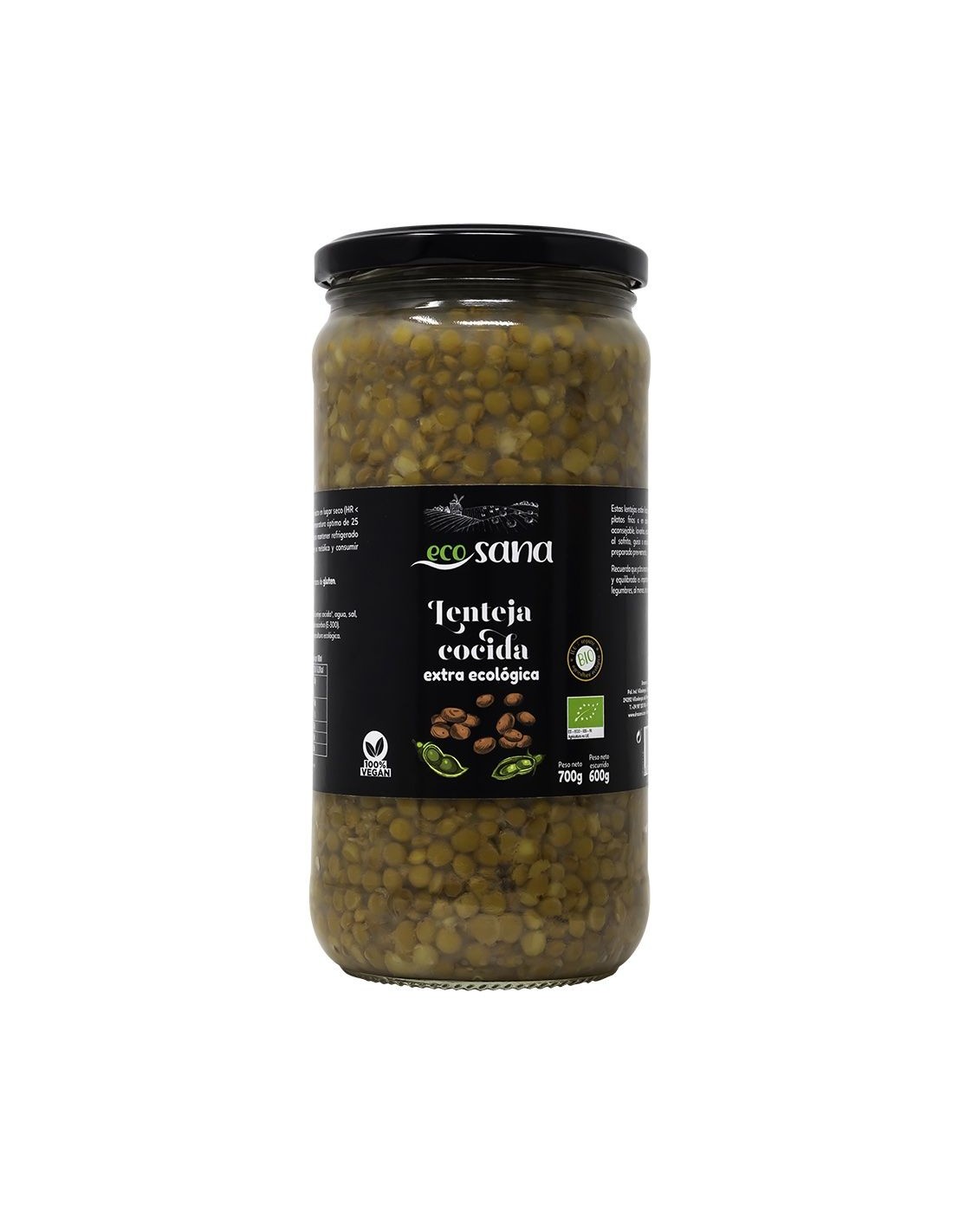 Lenteja Cocida Extra Bio 700-600G Ecosana