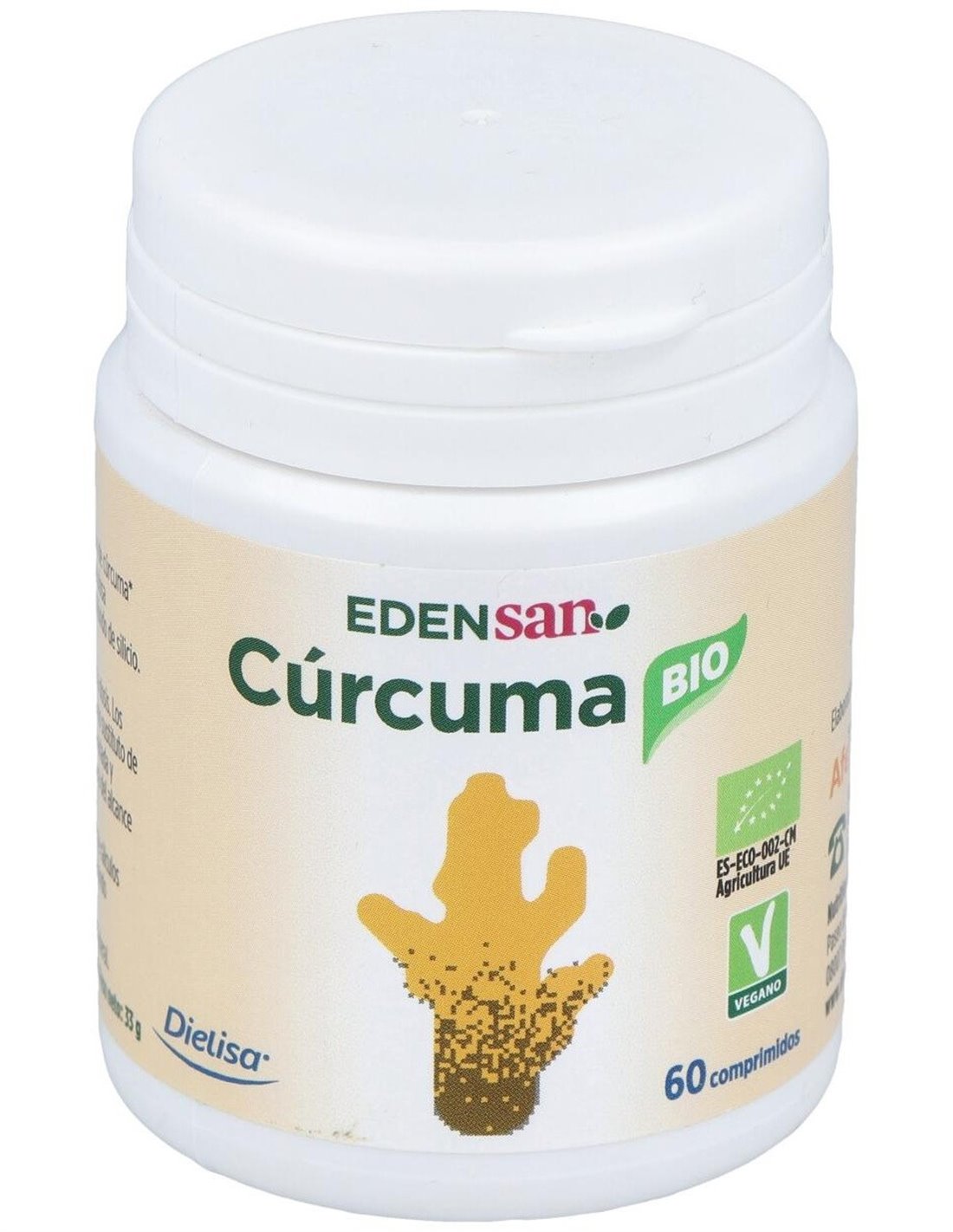 Edensan Cúrcuma Bio 60 Comp es un complemento alimenticio a base de raíz de cúrcuma procedente de cultivos ecológicos. La cúrcuma contiene curcumina, que es un componente activo con demostradas propiedades antiinflamatorias que ayuda a reducir la sintomatología y el dolor característico de las dolencias de los huesos y las articulaciones.
