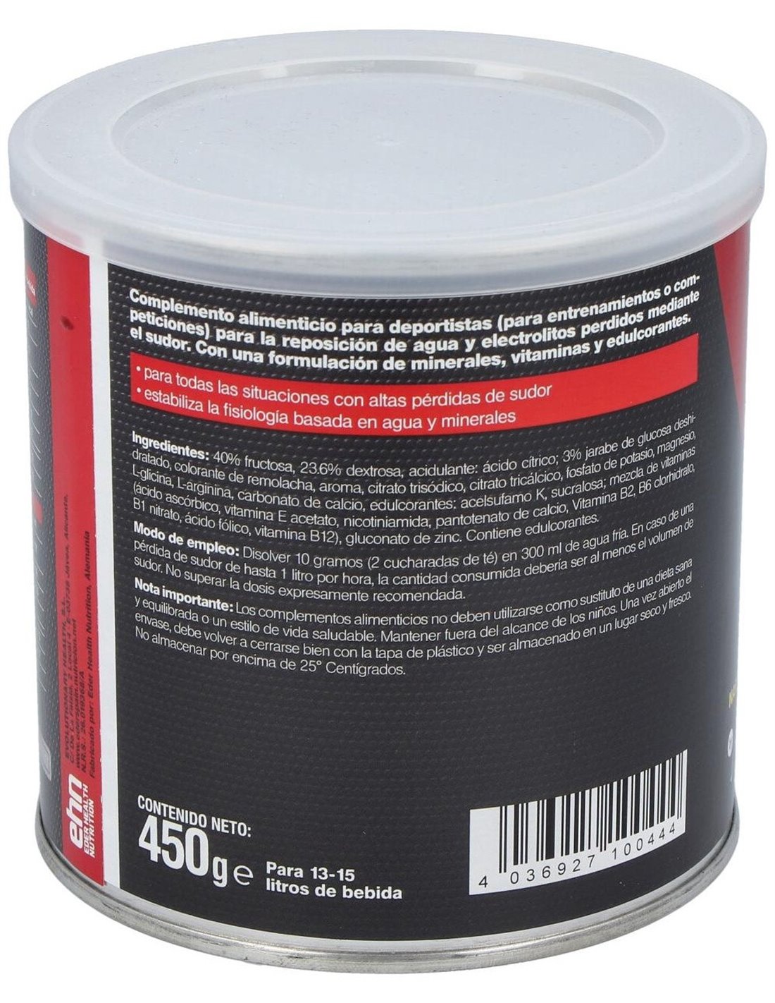 Suplemento para deportistas (para entrenamientos o competiciones) para ayudar a la reposición de agua y electrolitos perdidos mediante el sudor, gracias a su formulación de minerales, vitaminas y edulcorantes.